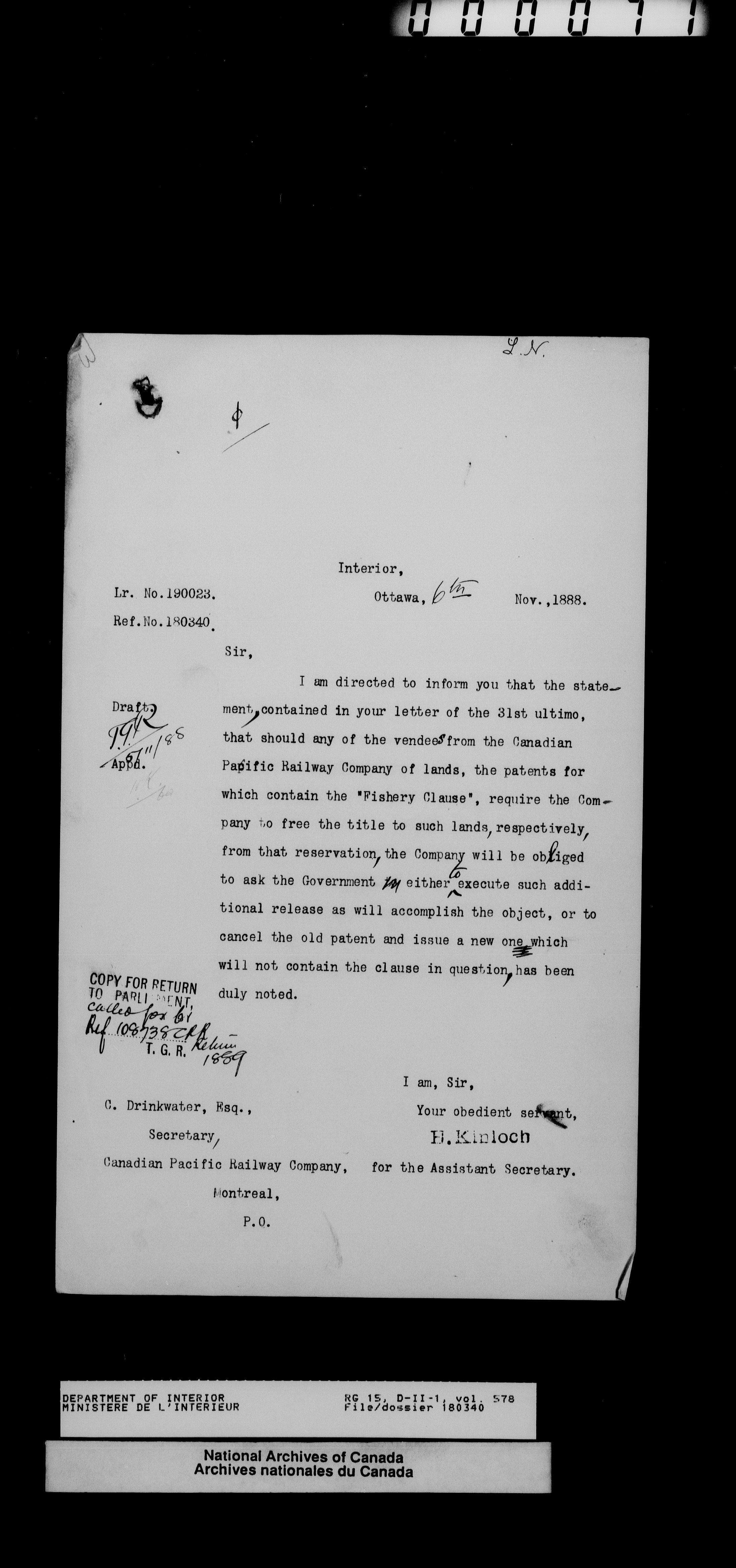 Central registry subject files created by the Dominion Lands Branch - 13829