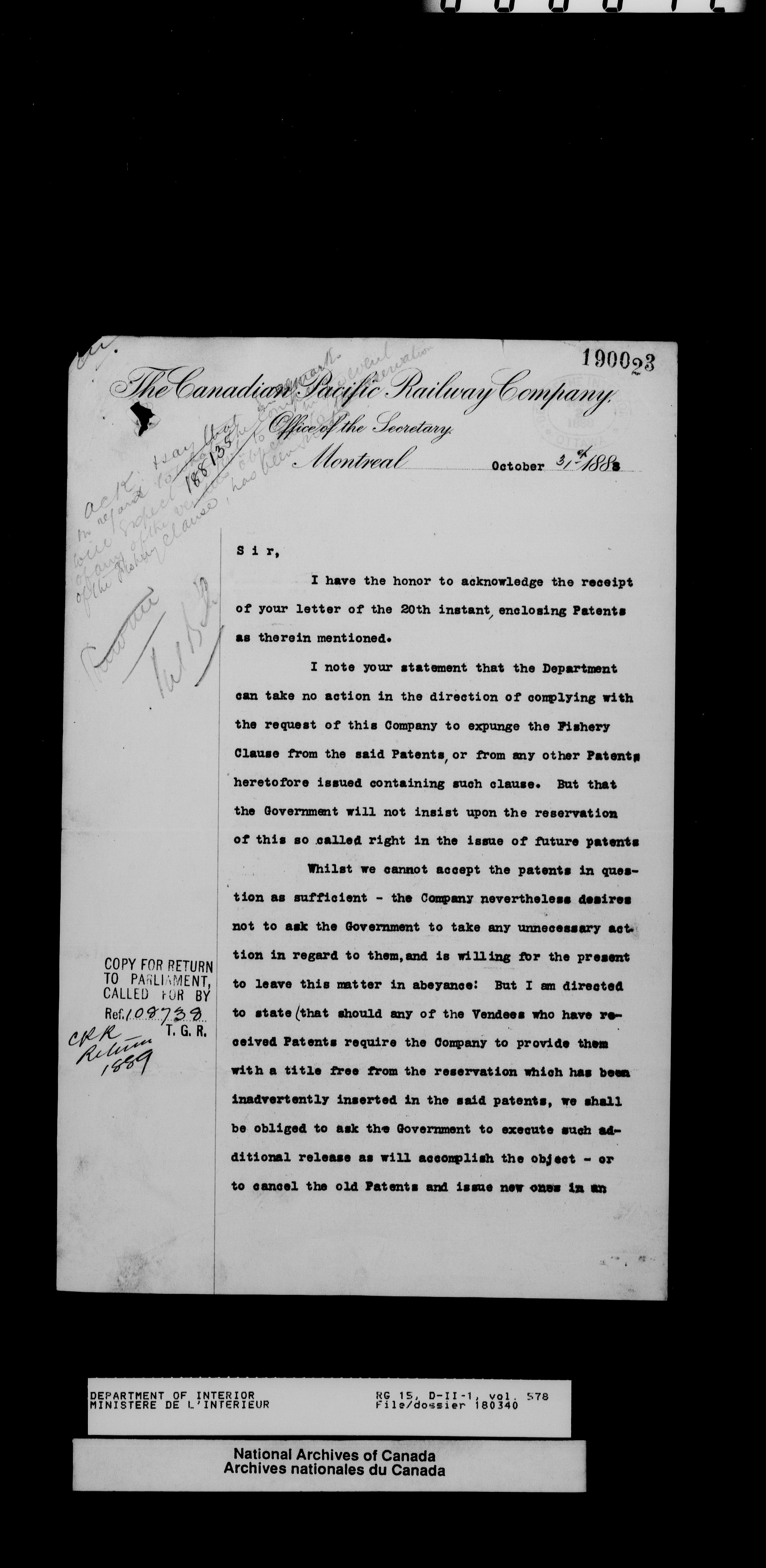 Central registry subject files created by the Dominion Lands Branch - 13829