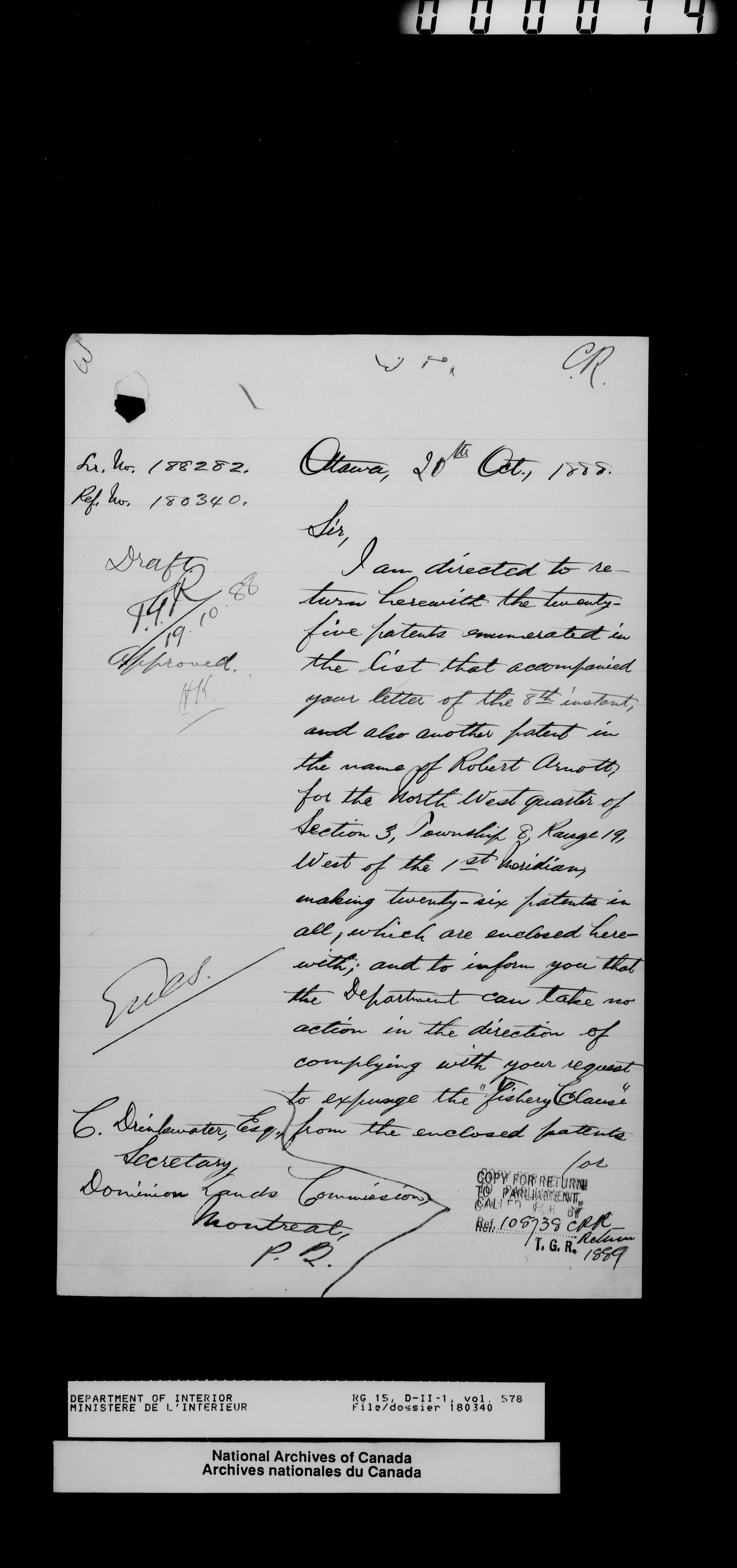 Central registry subject files created by the Dominion Lands Branch - 13829