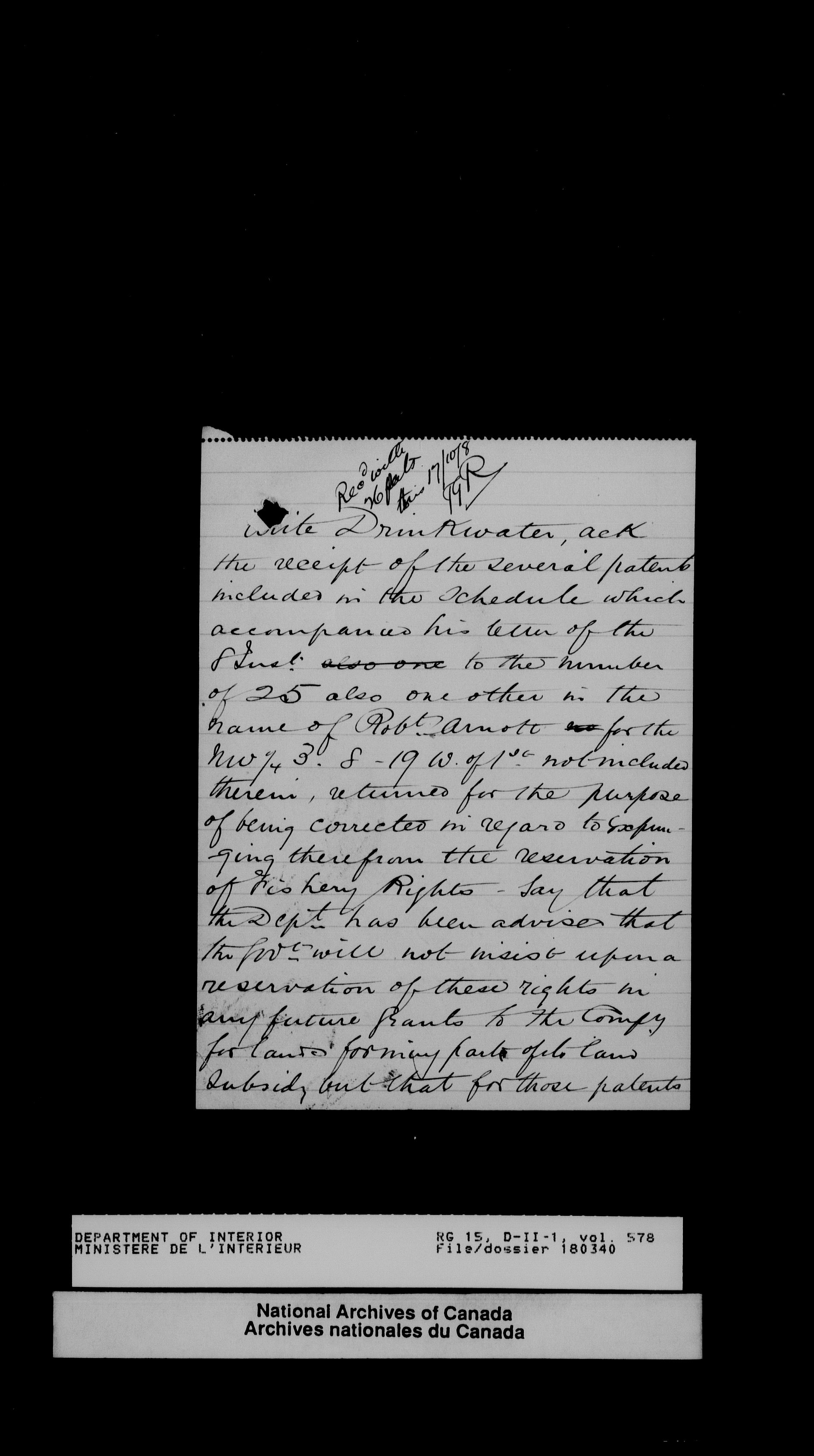 Central registry subject files created by the Dominion Lands Branch - 13829