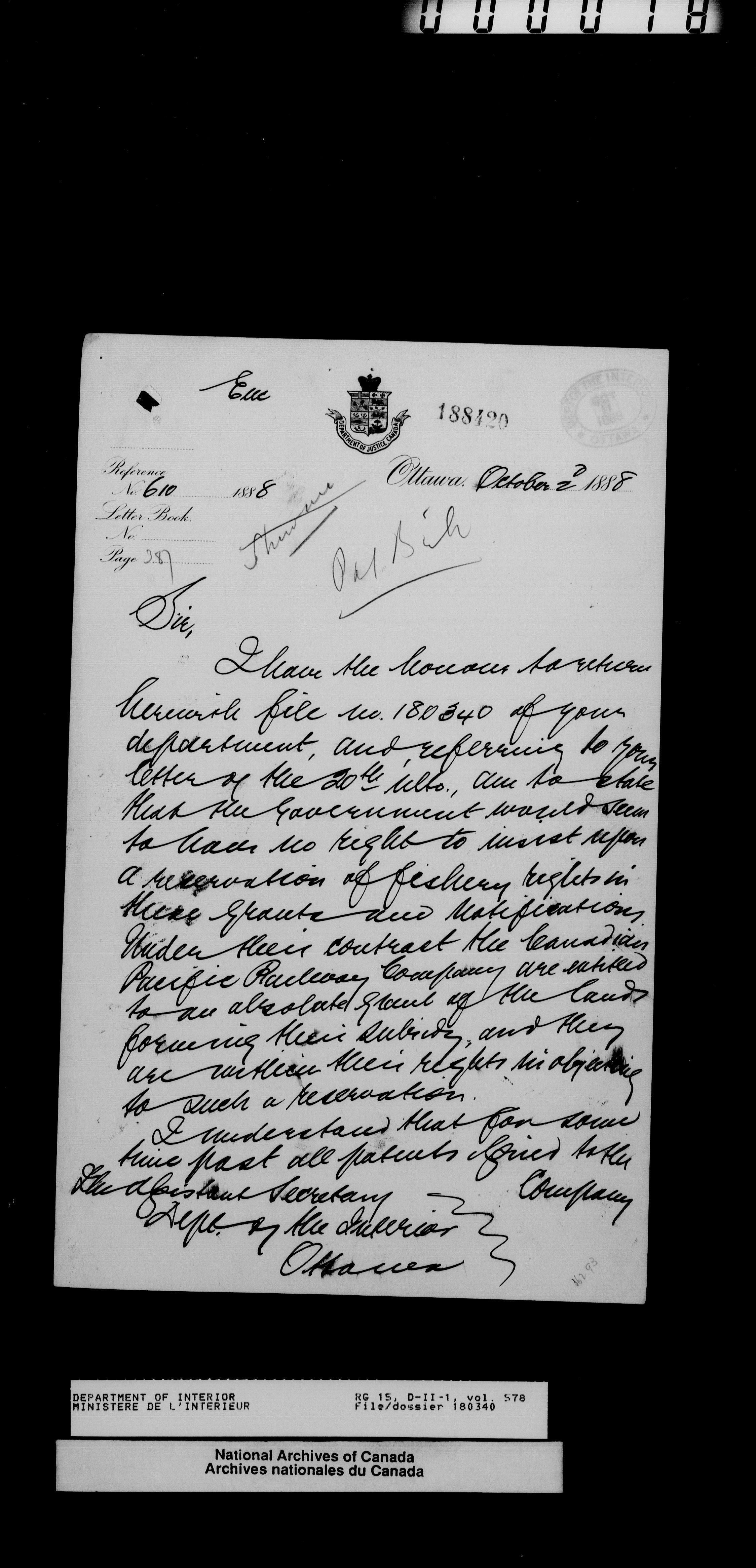 Central registry subject files created by the Dominion Lands Branch - 13829