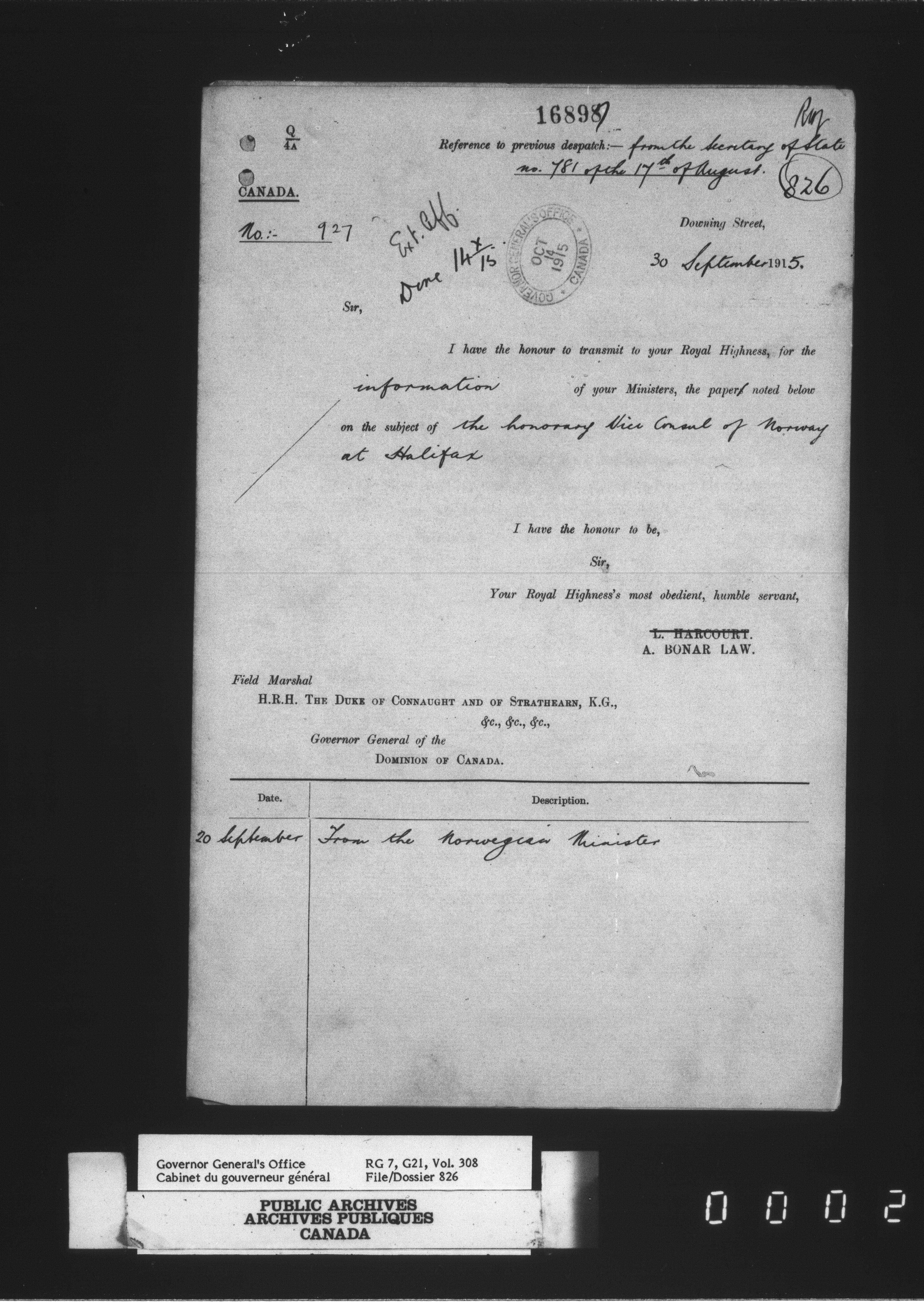 Vol. 308, file 826-311, file 1085, pt. 1a