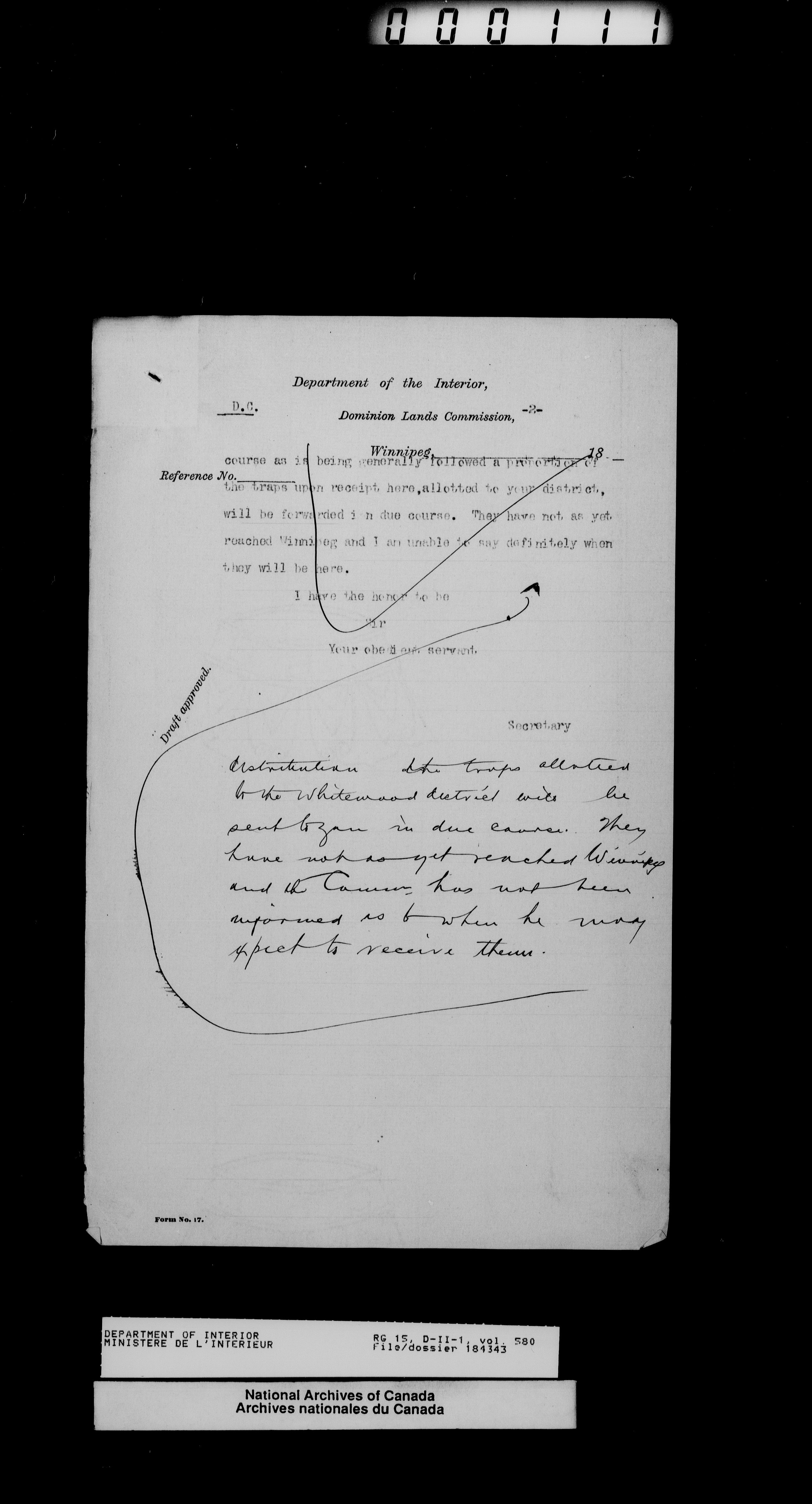 Central registry subject files created by the Dominion Lands Branch - 13831