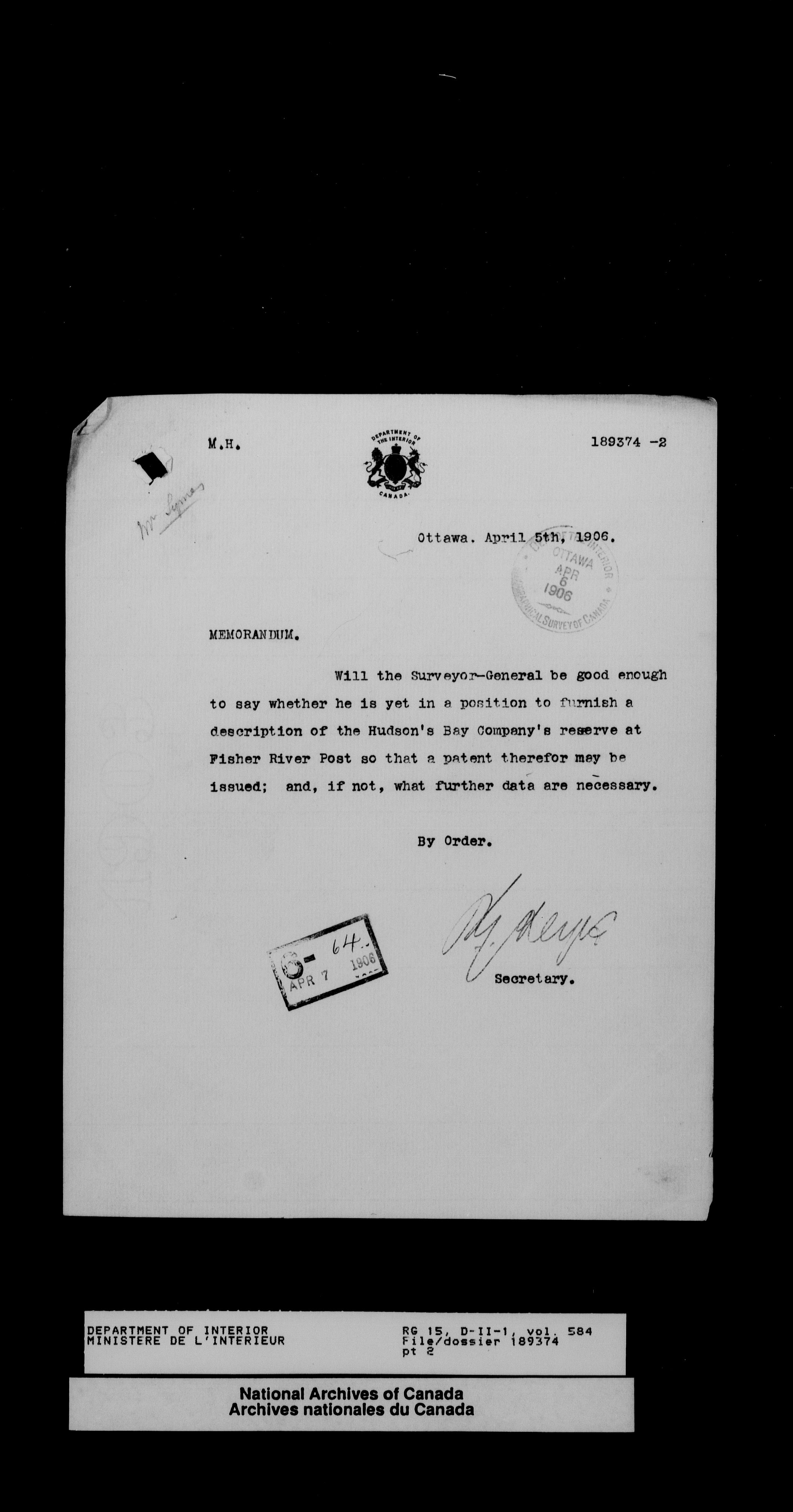 Central registry subject files created by the Dominion Lands Branch - 13834