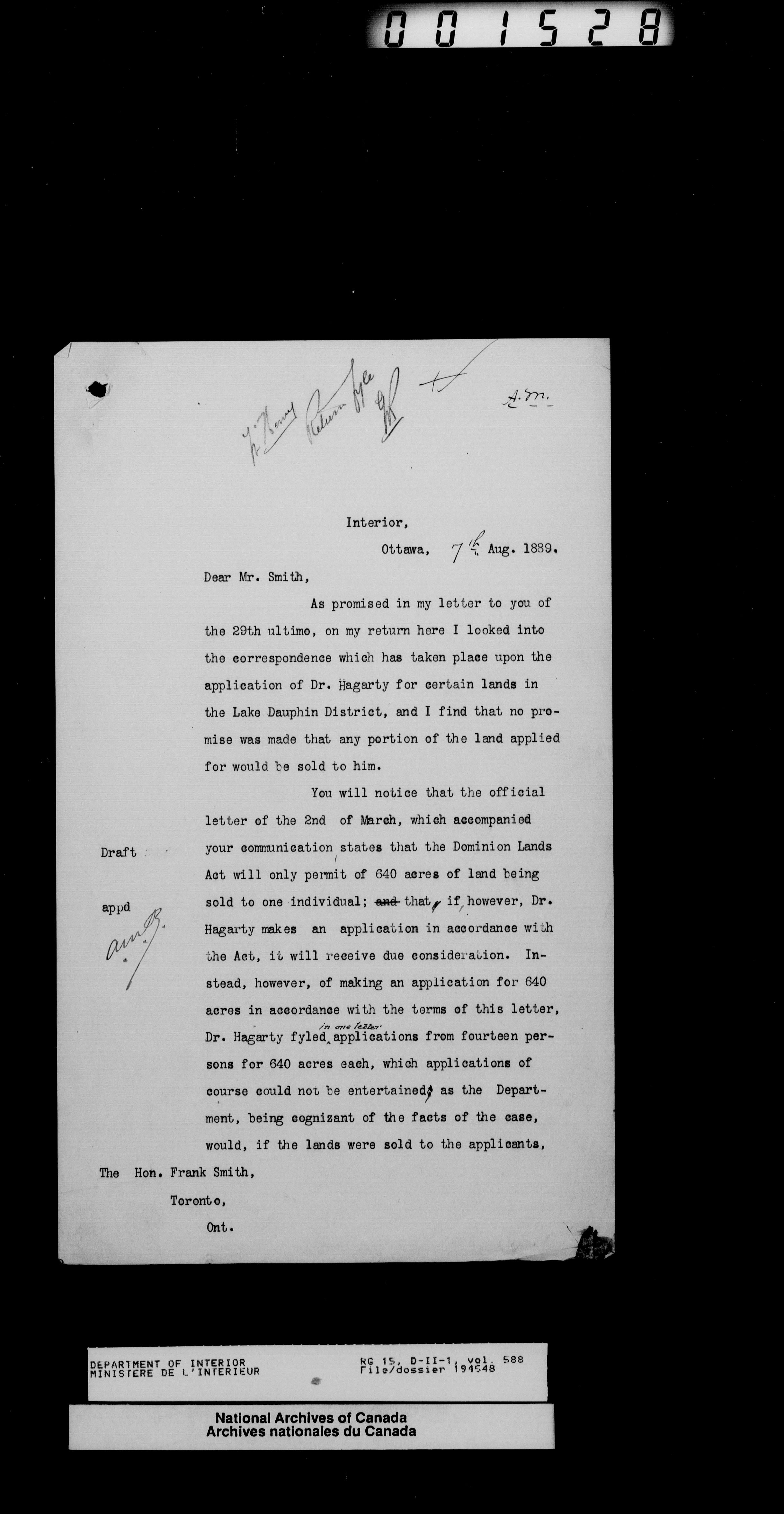 Central registry subject files created by the Dominion Lands Branch - 13836