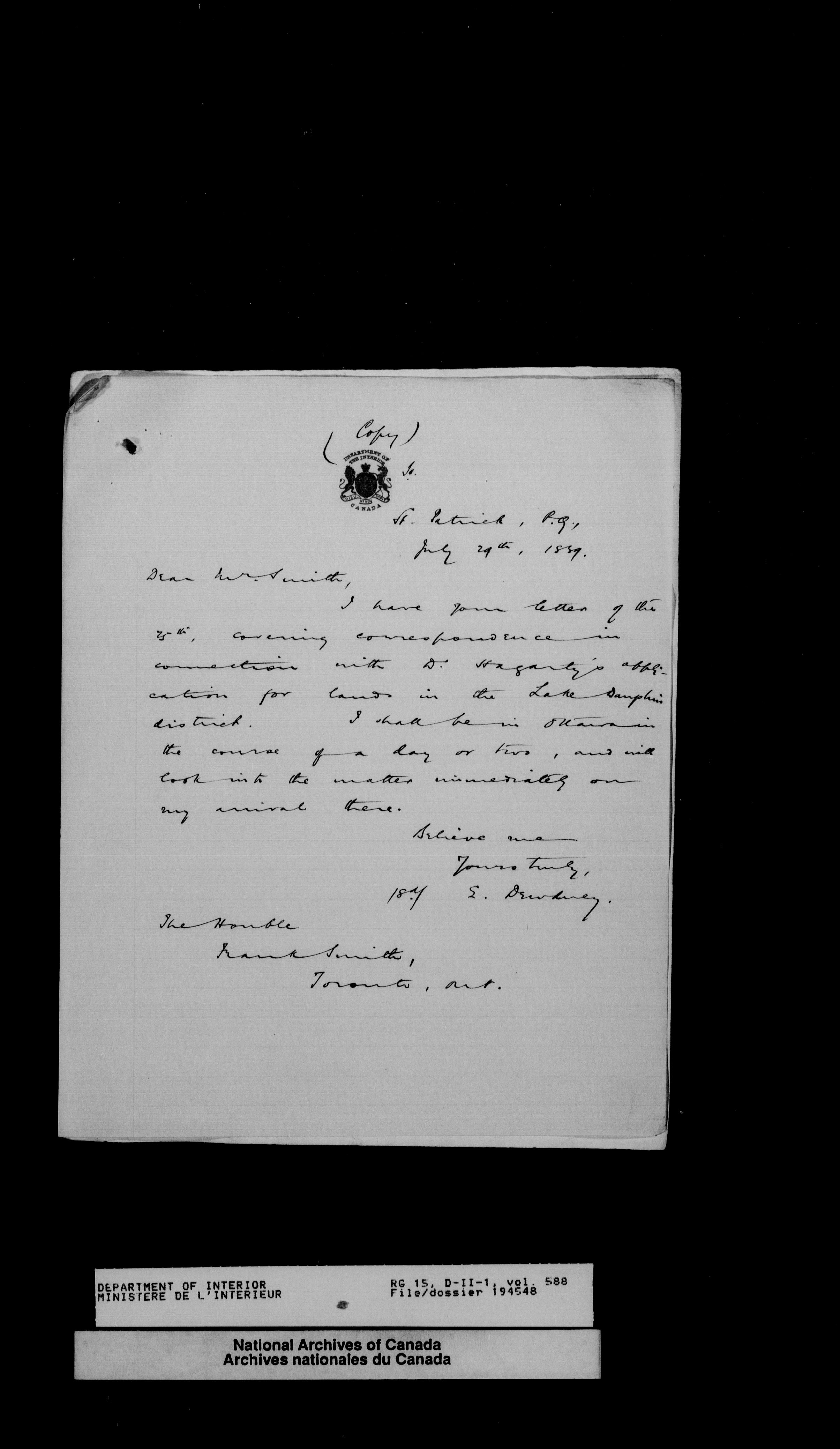 Central registry subject files created by the Dominion Lands Branch - 13836