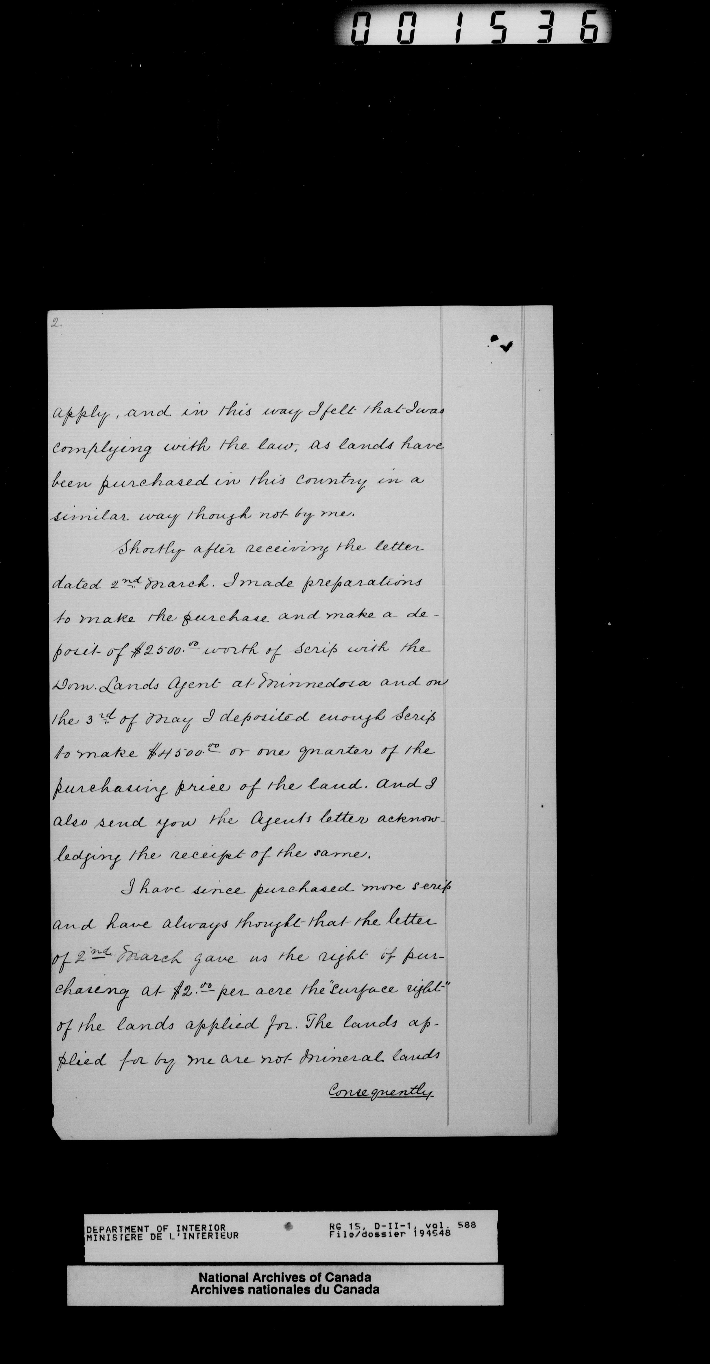 Central registry subject files created by the Dominion Lands Branch - 13836