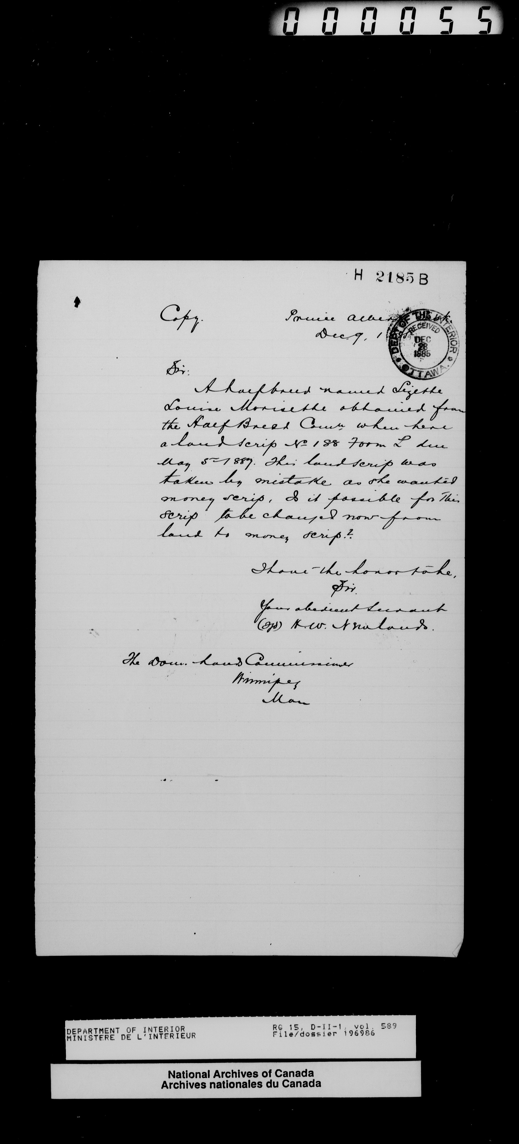 Central registry subject files created by the Dominion Lands Branch - 13838