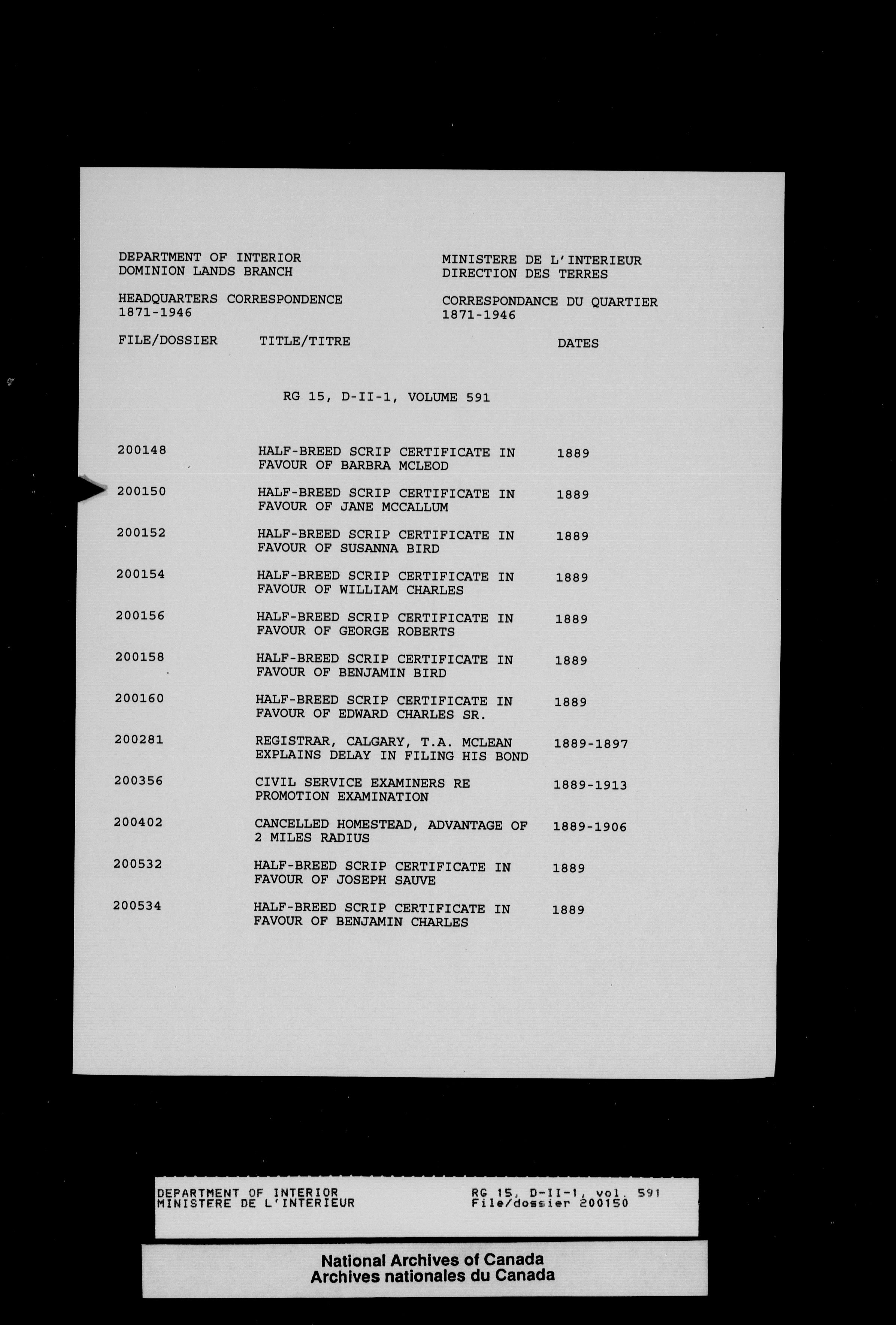 Central registry subject files created by the Dominion Lands Branch - 13839