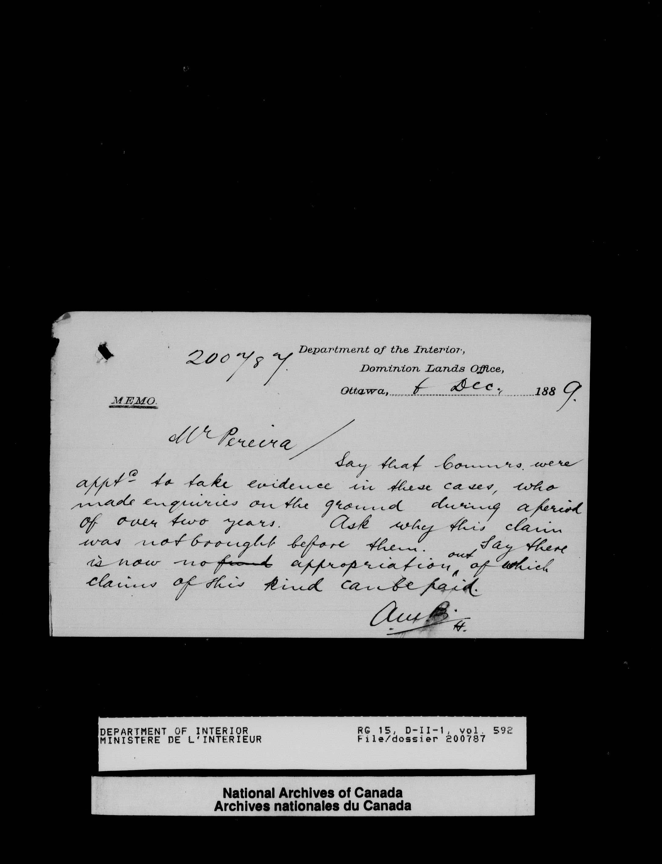 Central registry subject files created by the Dominion Lands Branch - 13840