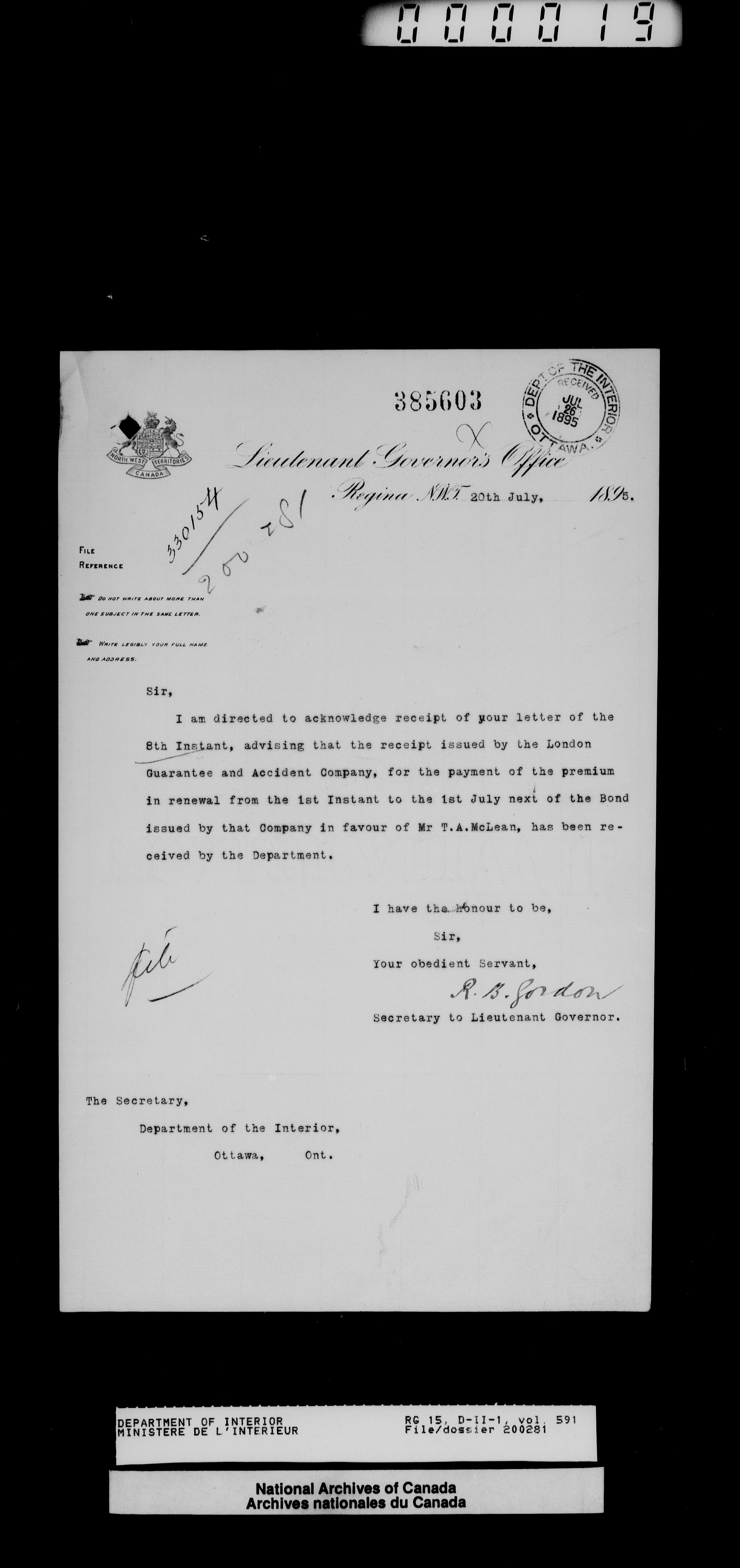 Central registry subject files created by the Dominion Lands Branch - 13840