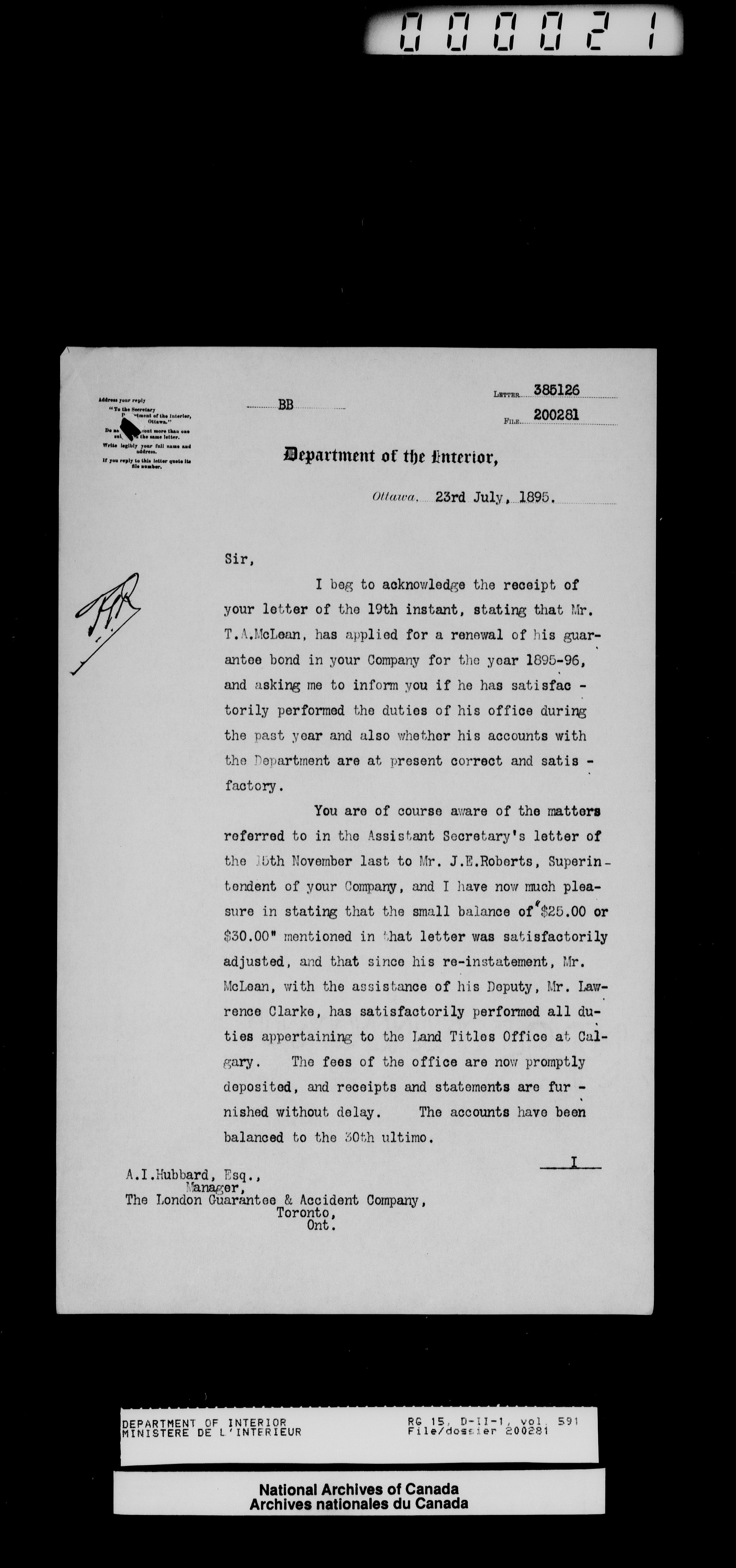 Central registry subject files created by the Dominion Lands Branch - 13840