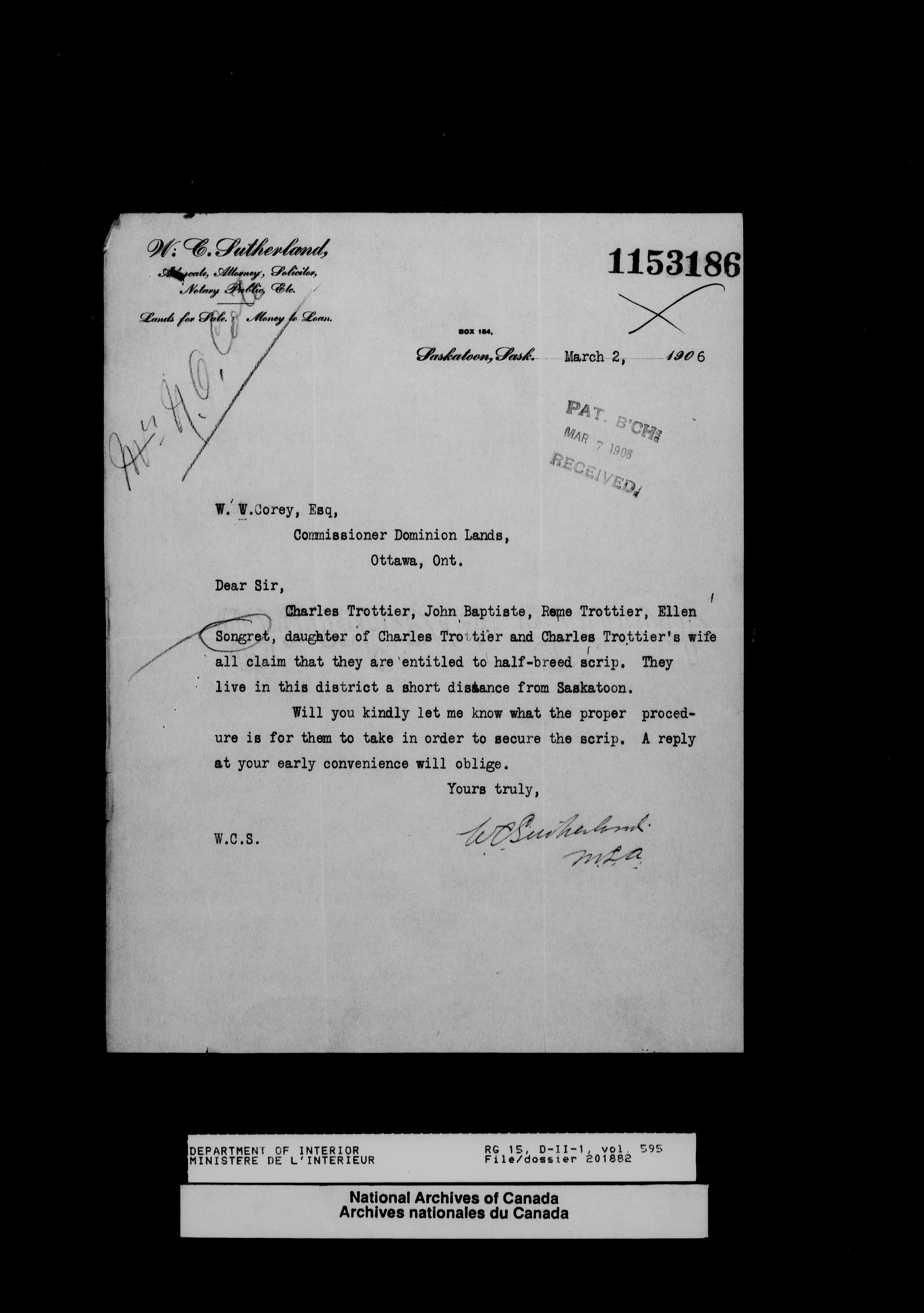 Central registry subject files created by the Dominion Lands Branch - 13843