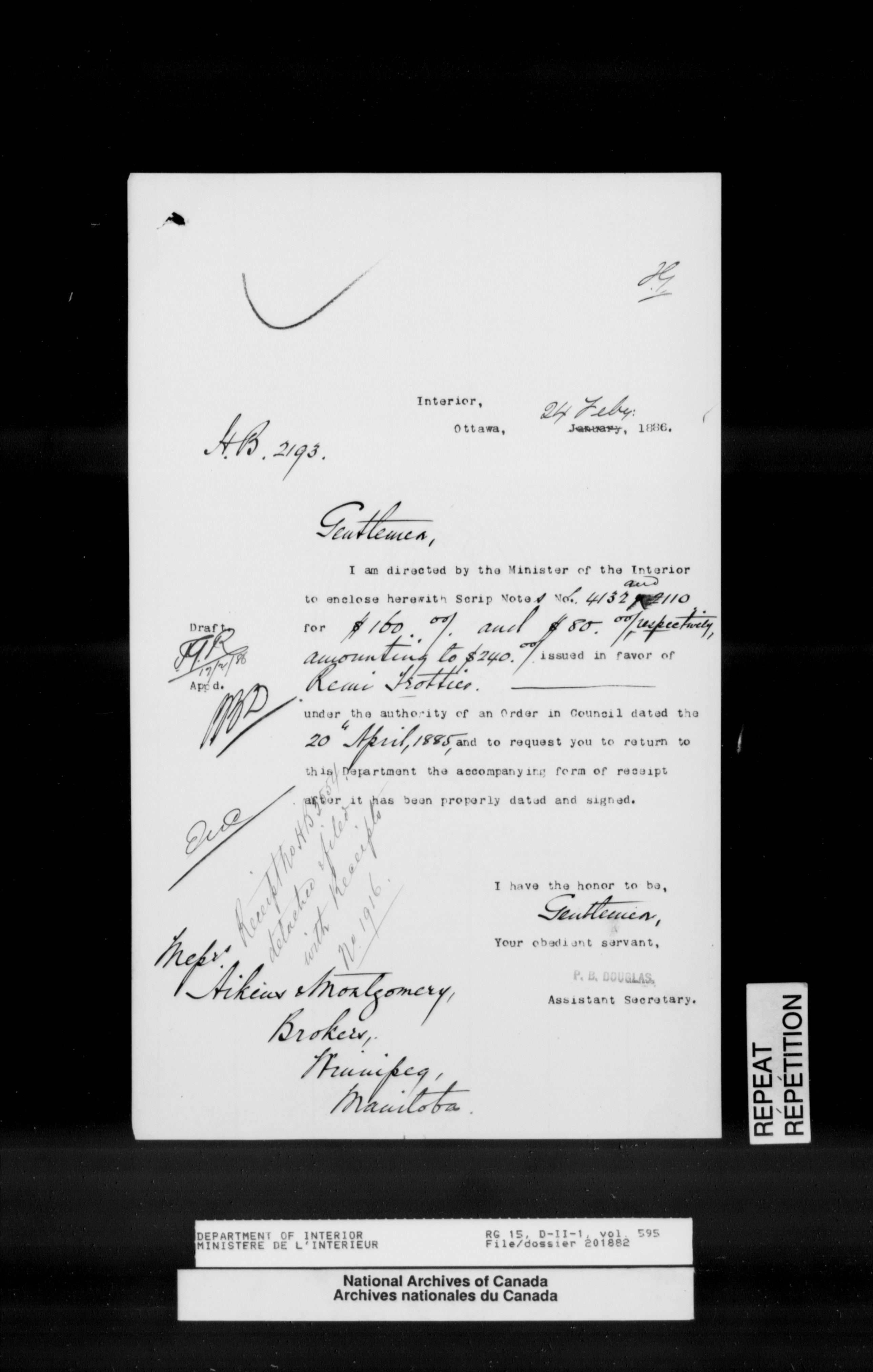 Central registry subject files created by the Dominion Lands Branch (Vol. 595, file 201882 to vol. 596, file 203573) - 13844