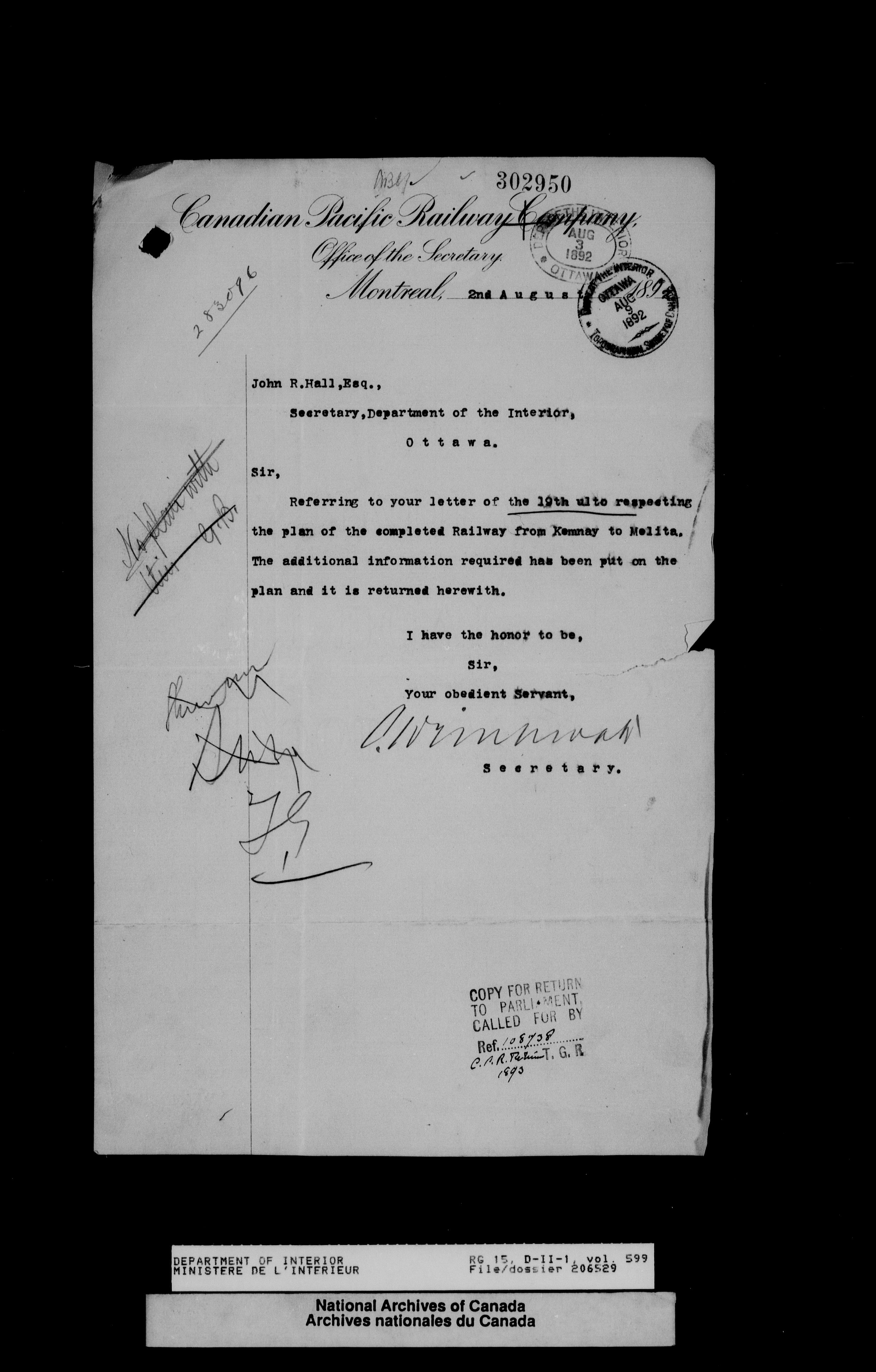 Central registry subject files created by the Dominion Lands Branch - 13846