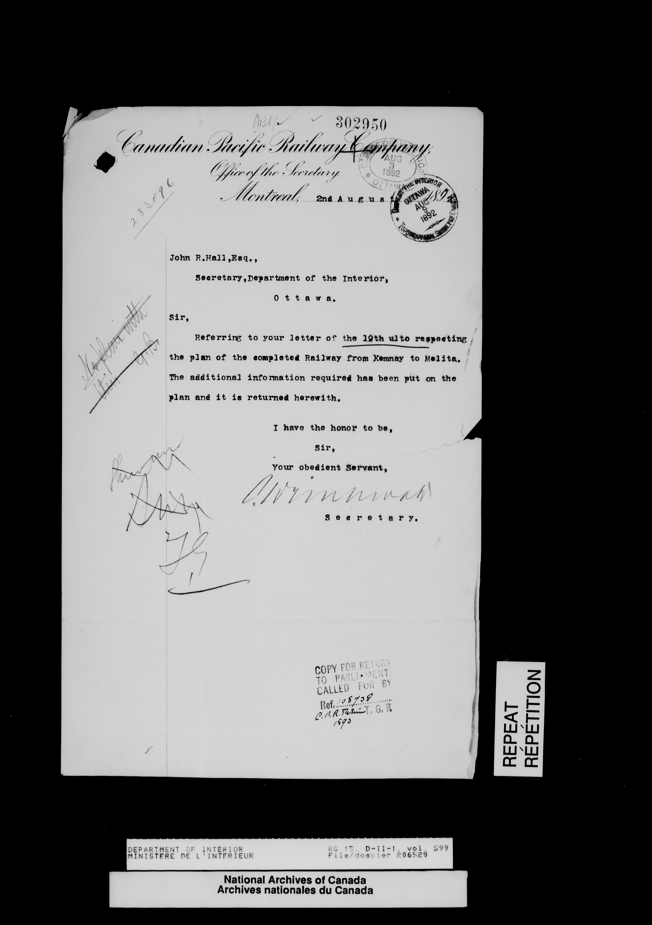 Central registry subject files created by the Dominion Lands Branch - 13846