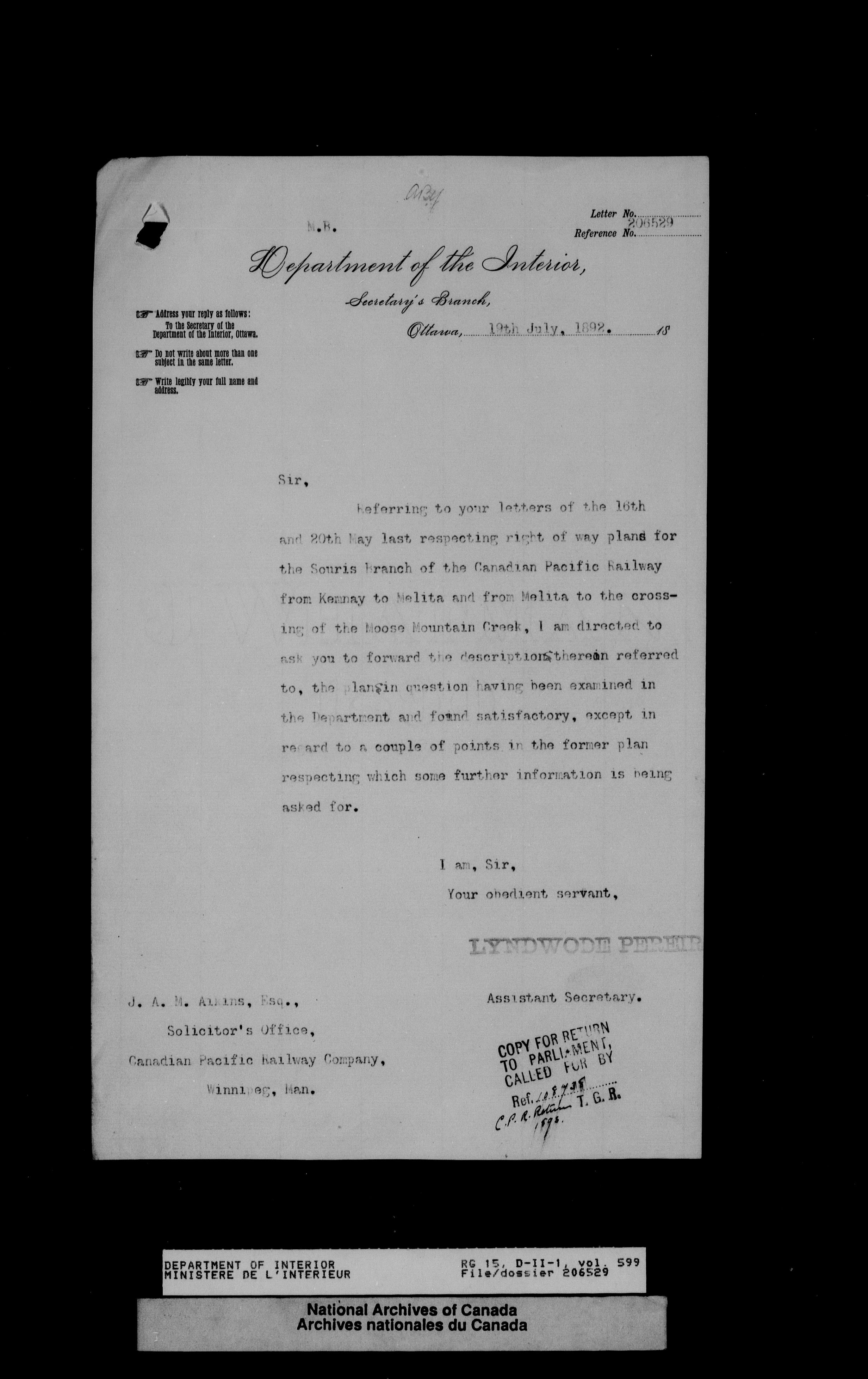 Central registry subject files created by the Dominion Lands Branch - 13846