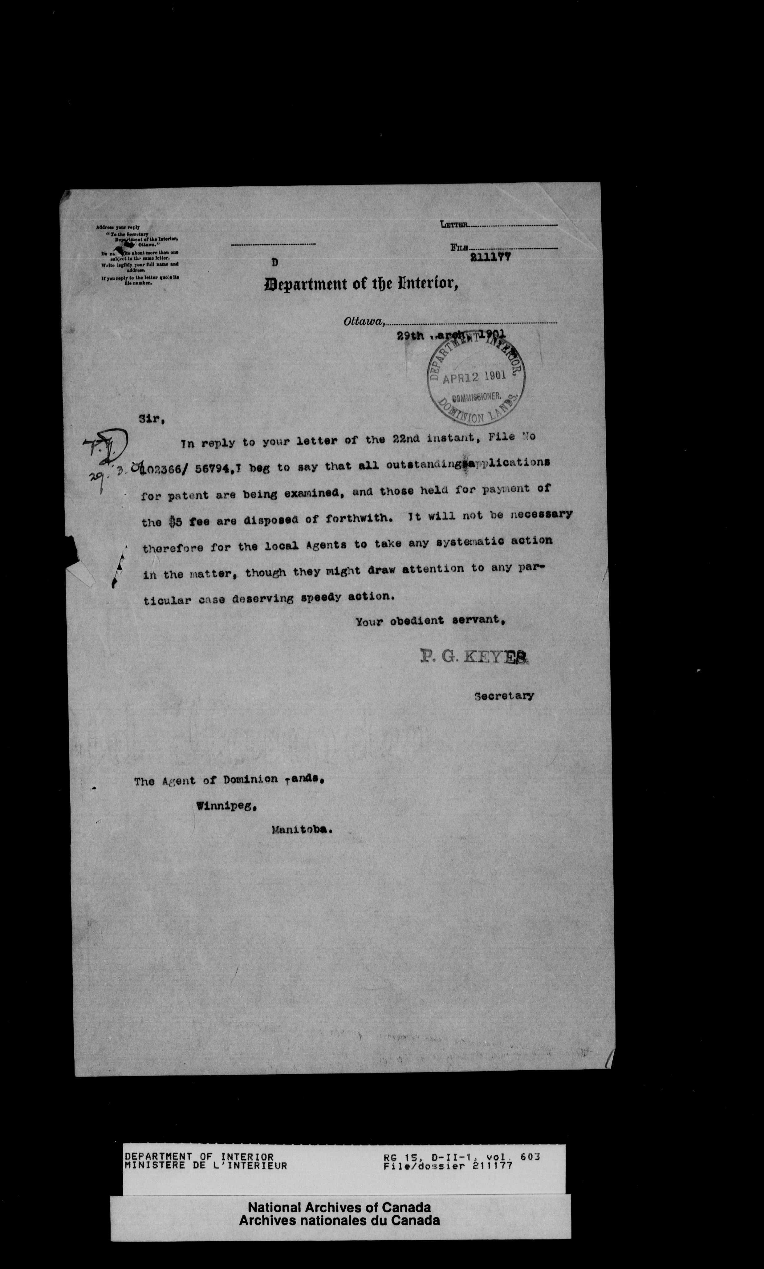 Central registry subject files created by the Dominion Lands Branch - 13851