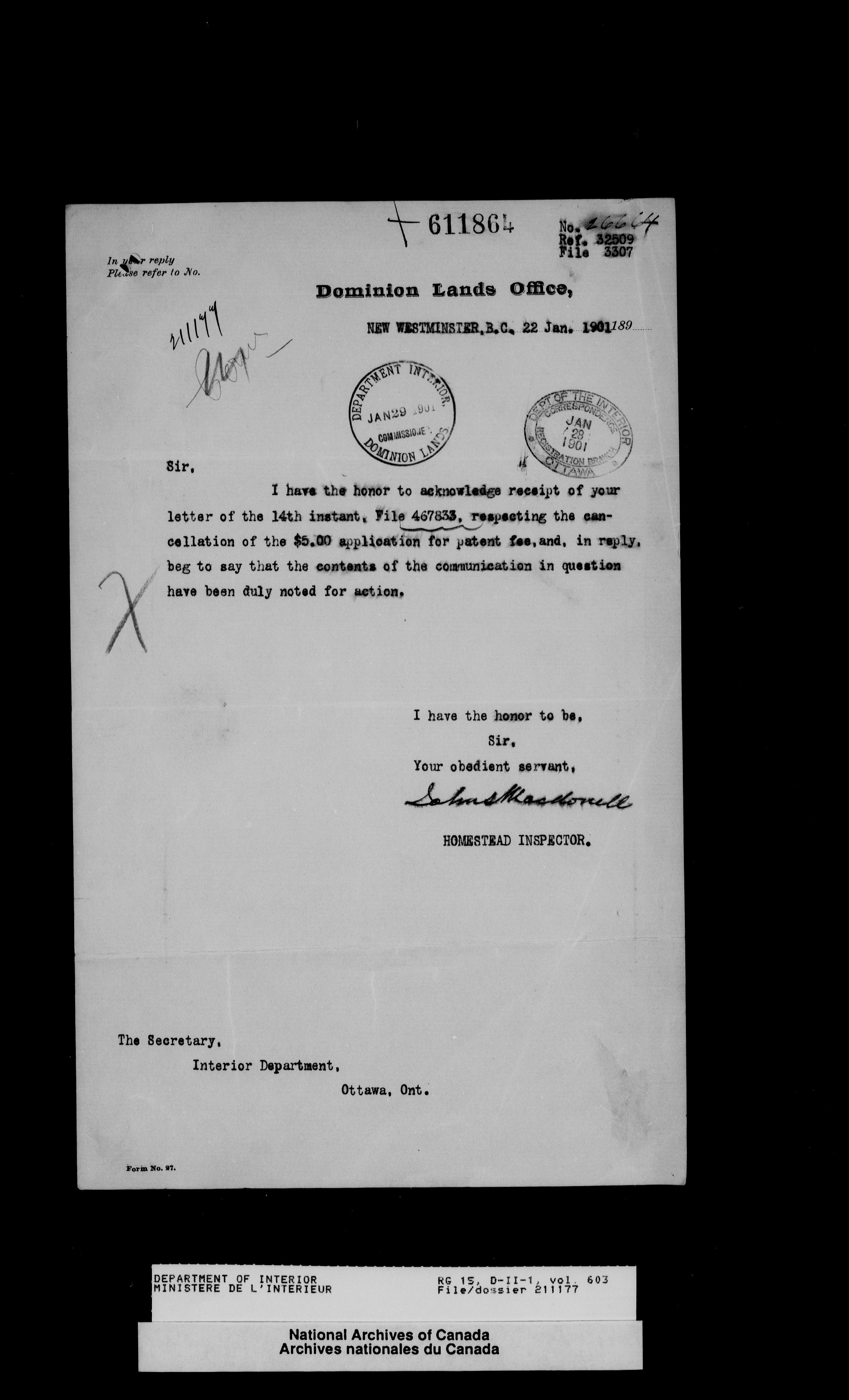 Central registry subject files created by the Dominion Lands Branch - 13851
