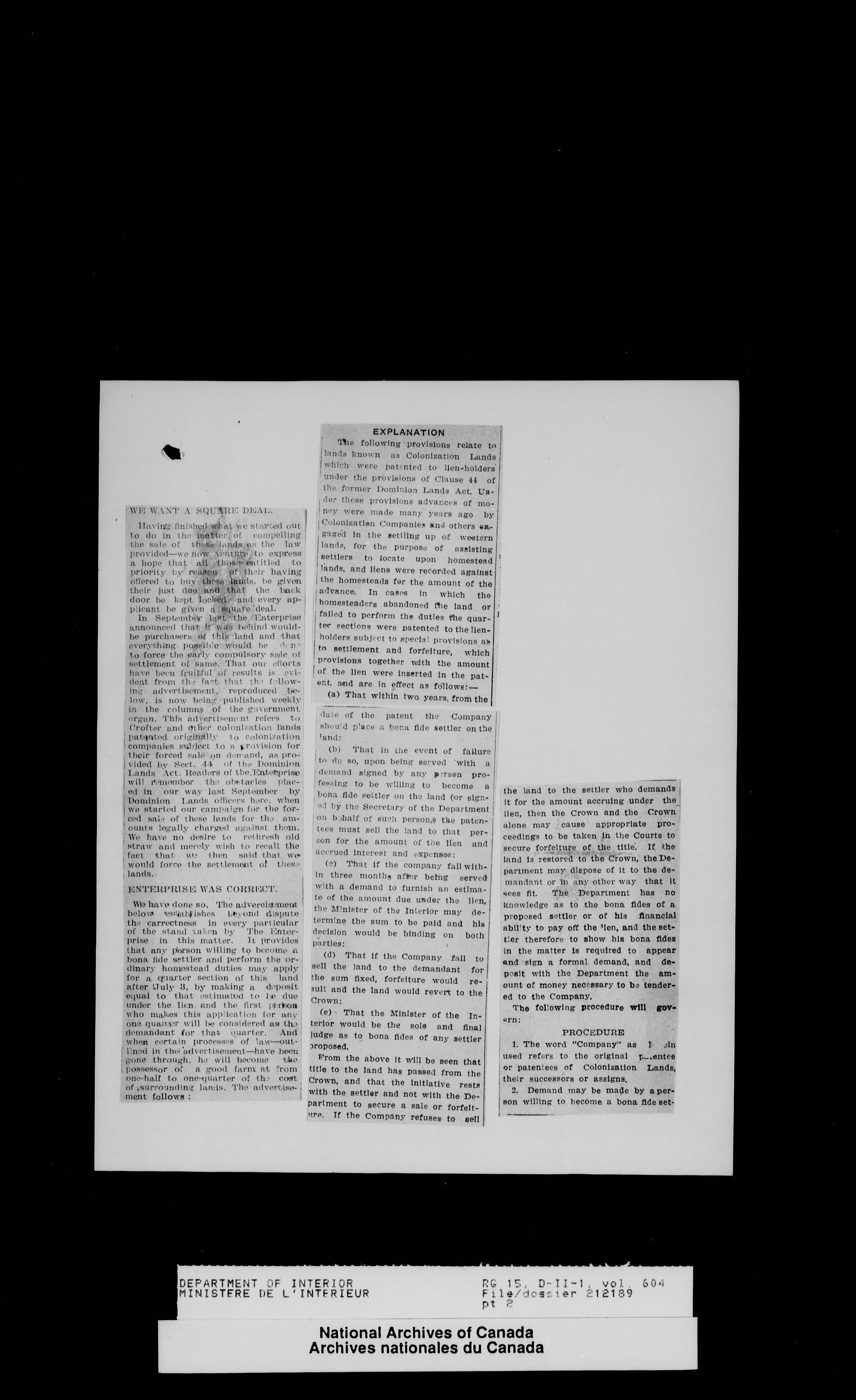 Central registry subject files created by the Dominion Lands Branch - 13852