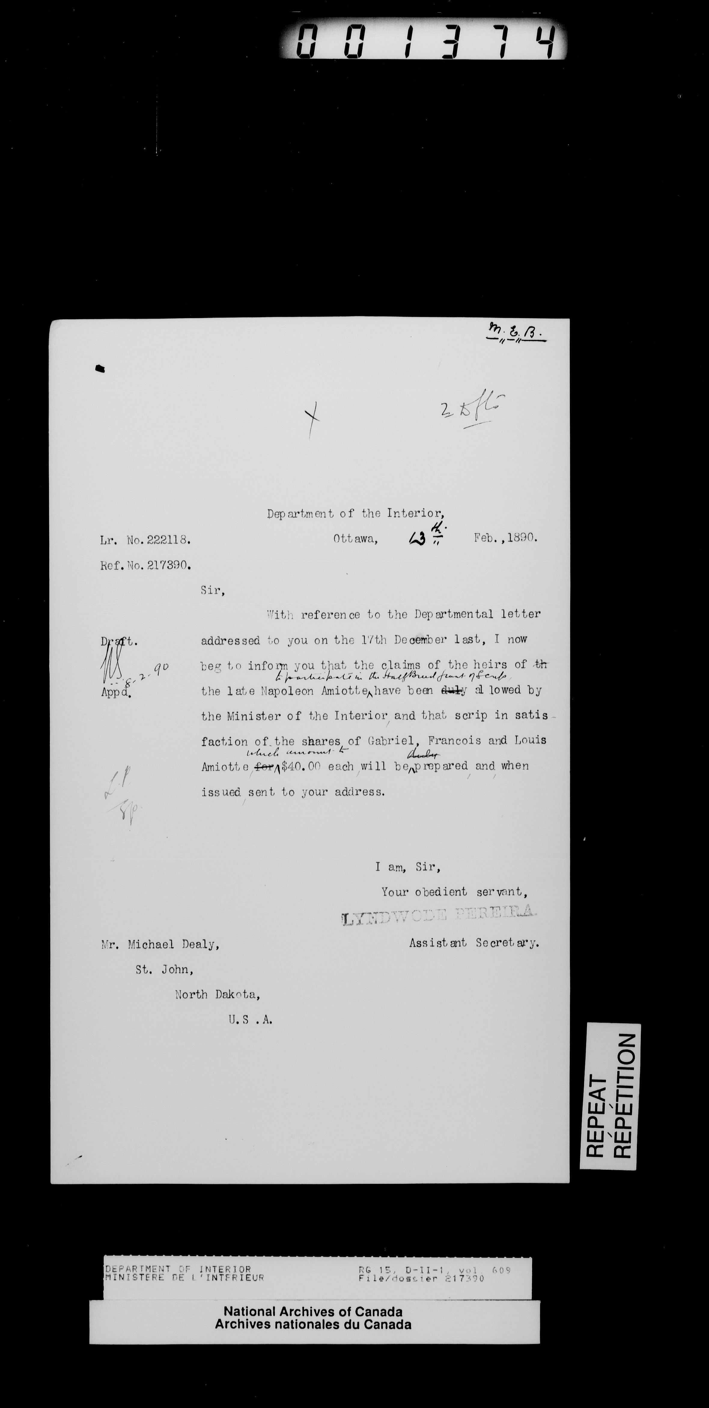 Central registry subject files created by the Dominion Lands Branch - 13856