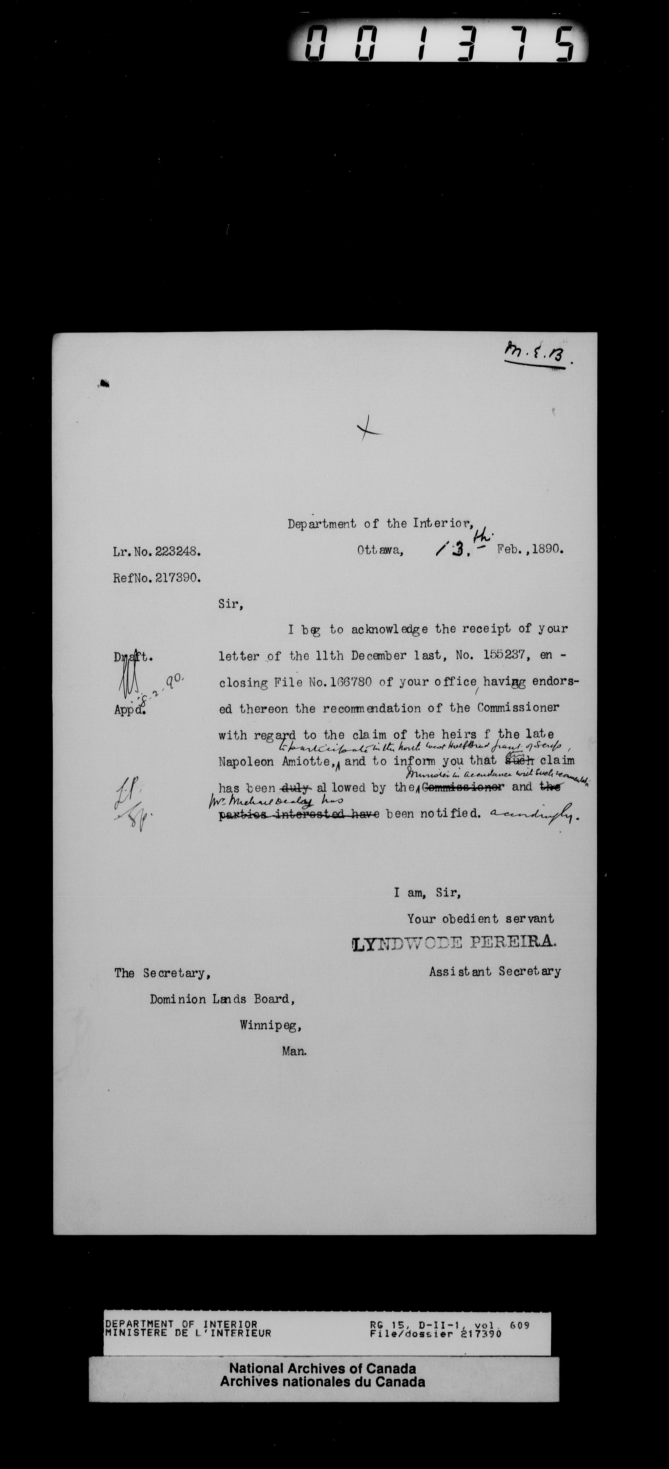 Central registry subject files created by the Dominion Lands Branch - 13856