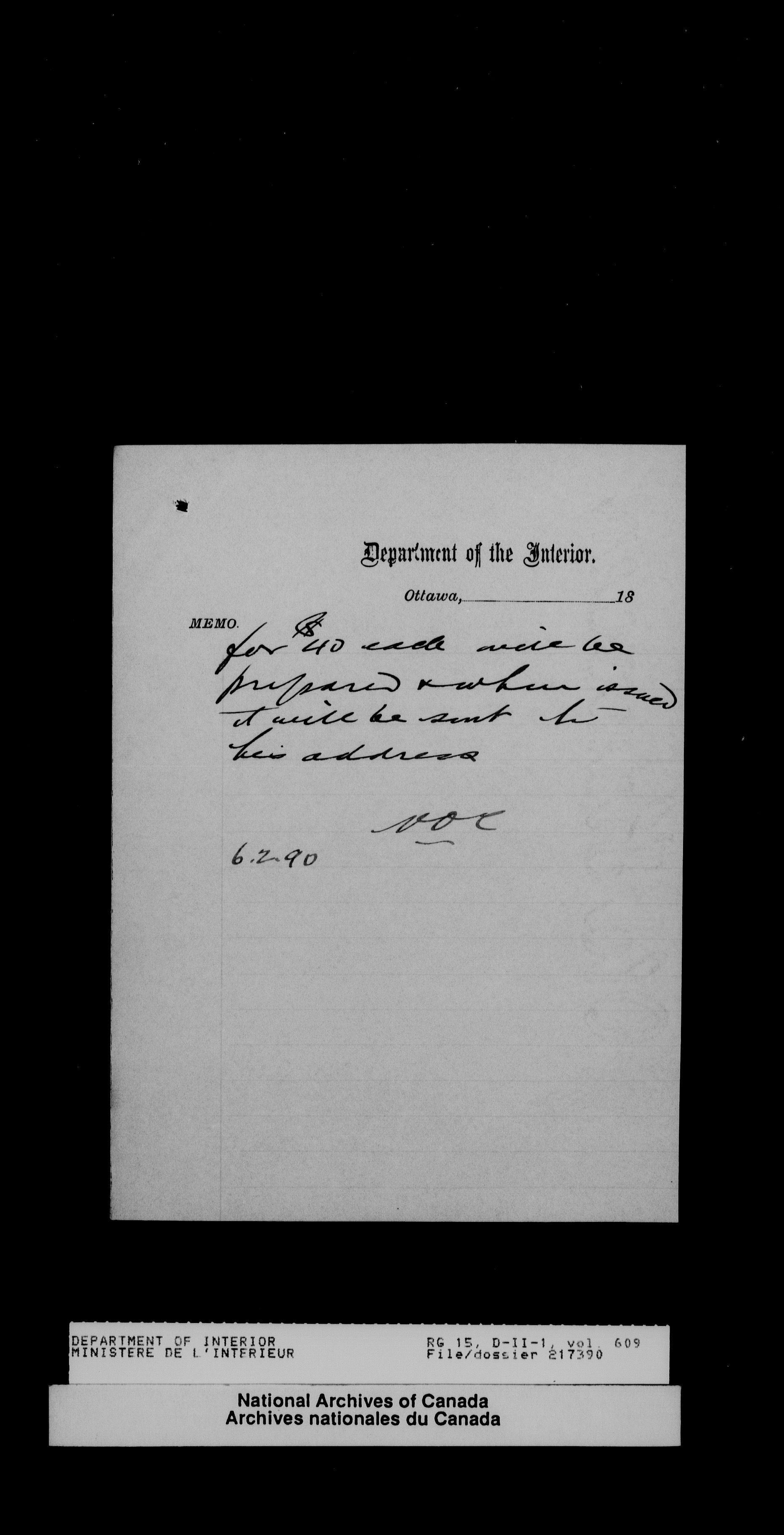 Central registry subject files created by the Dominion Lands Branch - 13856