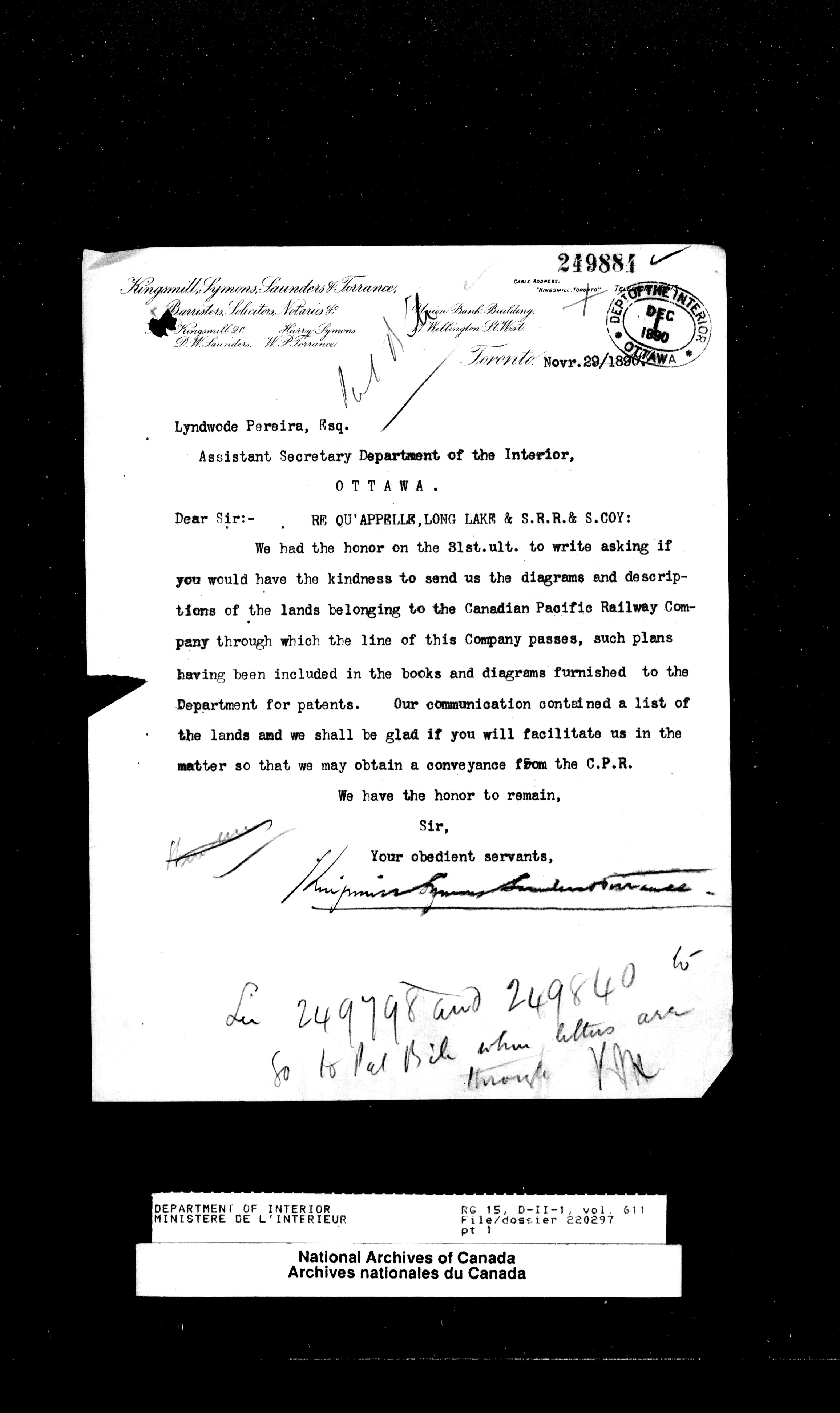 Central registry subject files created by the Dominion Lands Branch - 13858