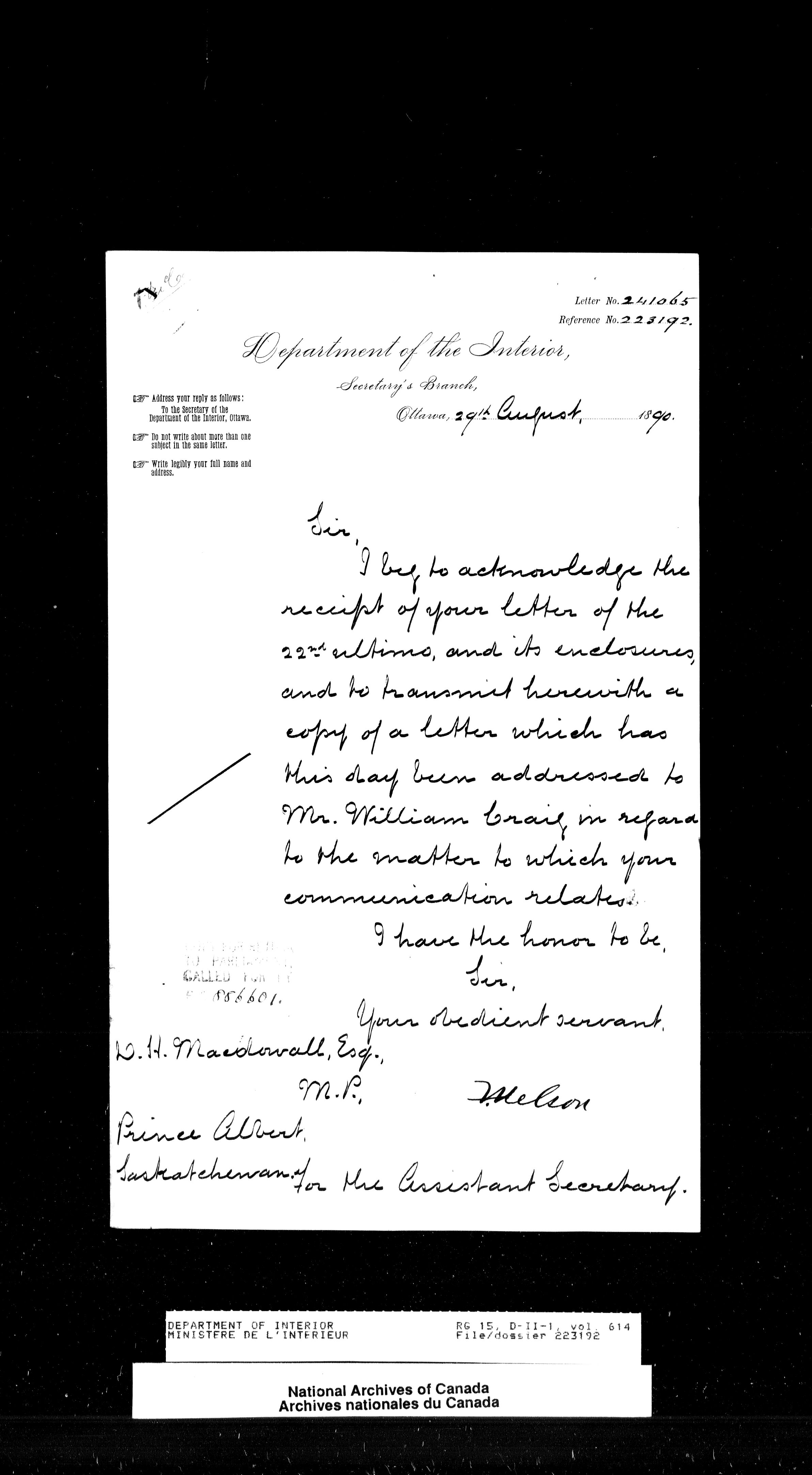 Central registry subject files created by the Dominion Lands Branch - 13862