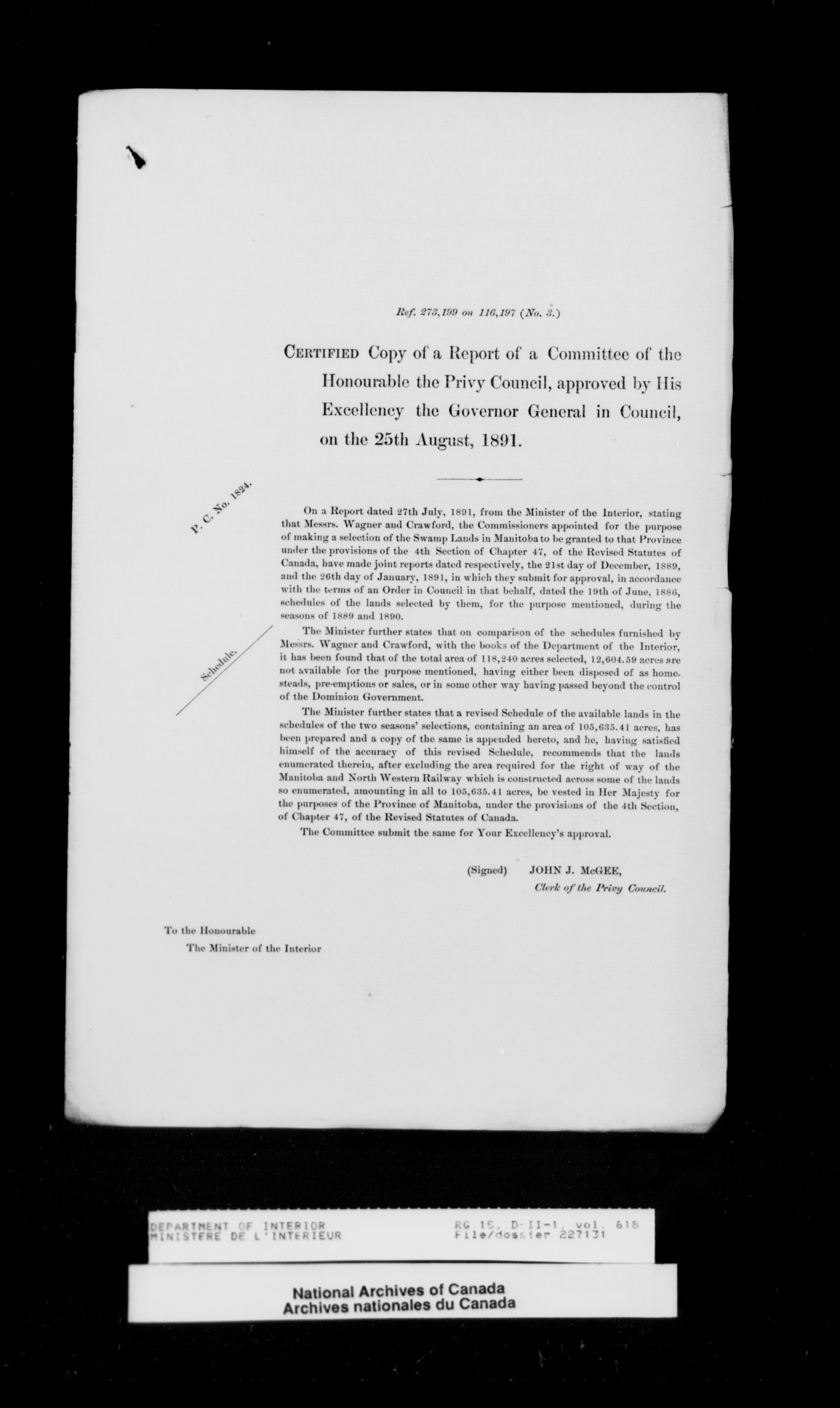 Central registry subject files created by the Dominion Lands Branch - T-13865