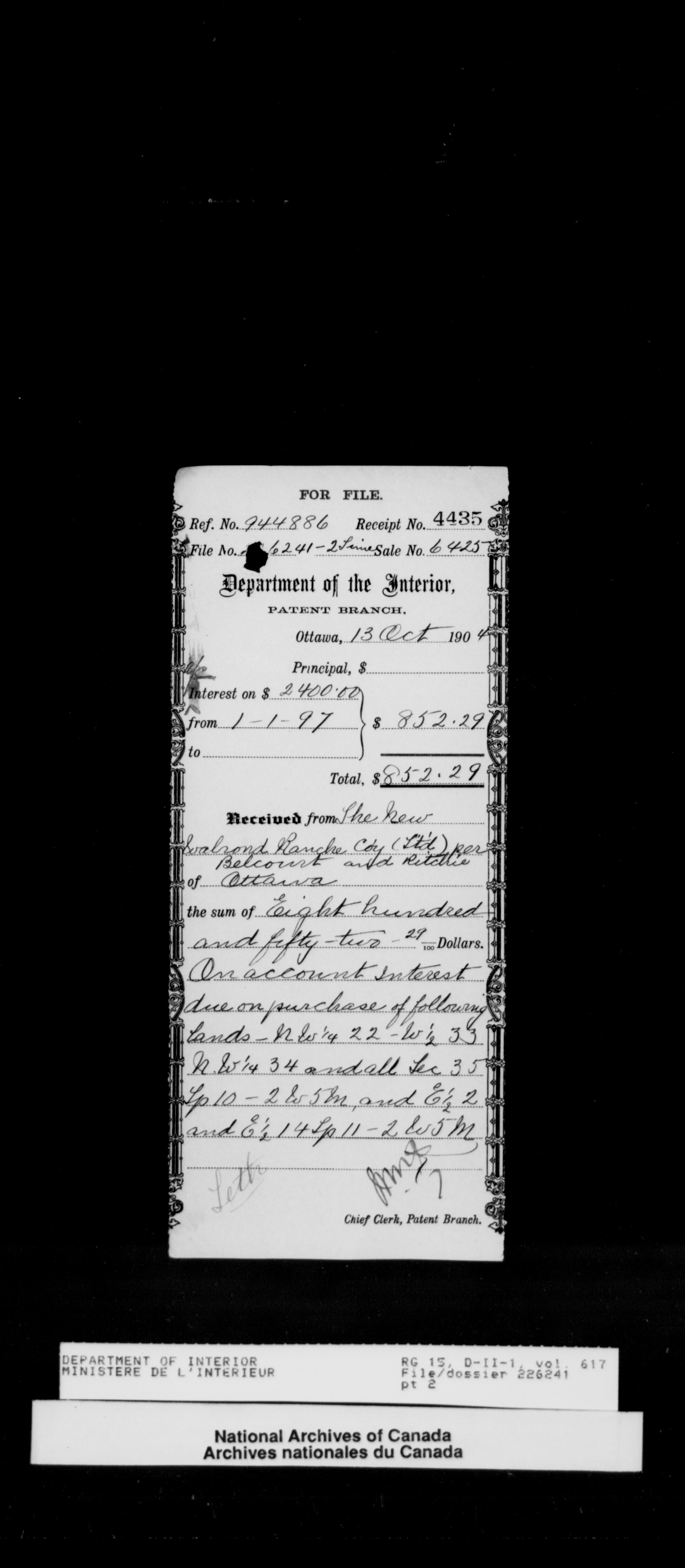 Central registry subject files created by the Dominion Lands Branch - T-13865