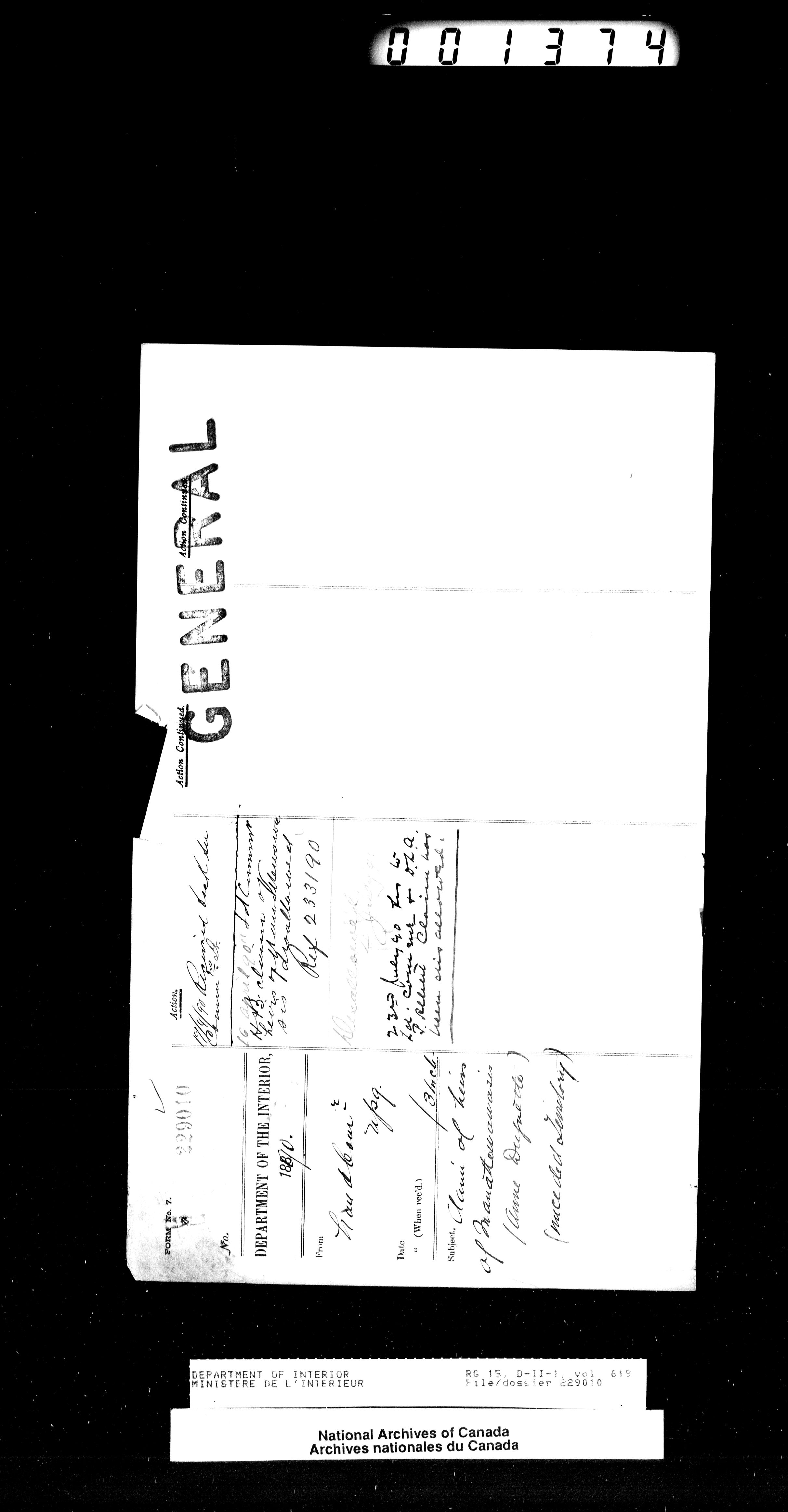 Central registry subject files created by the Dominion Lands Branch - 13866