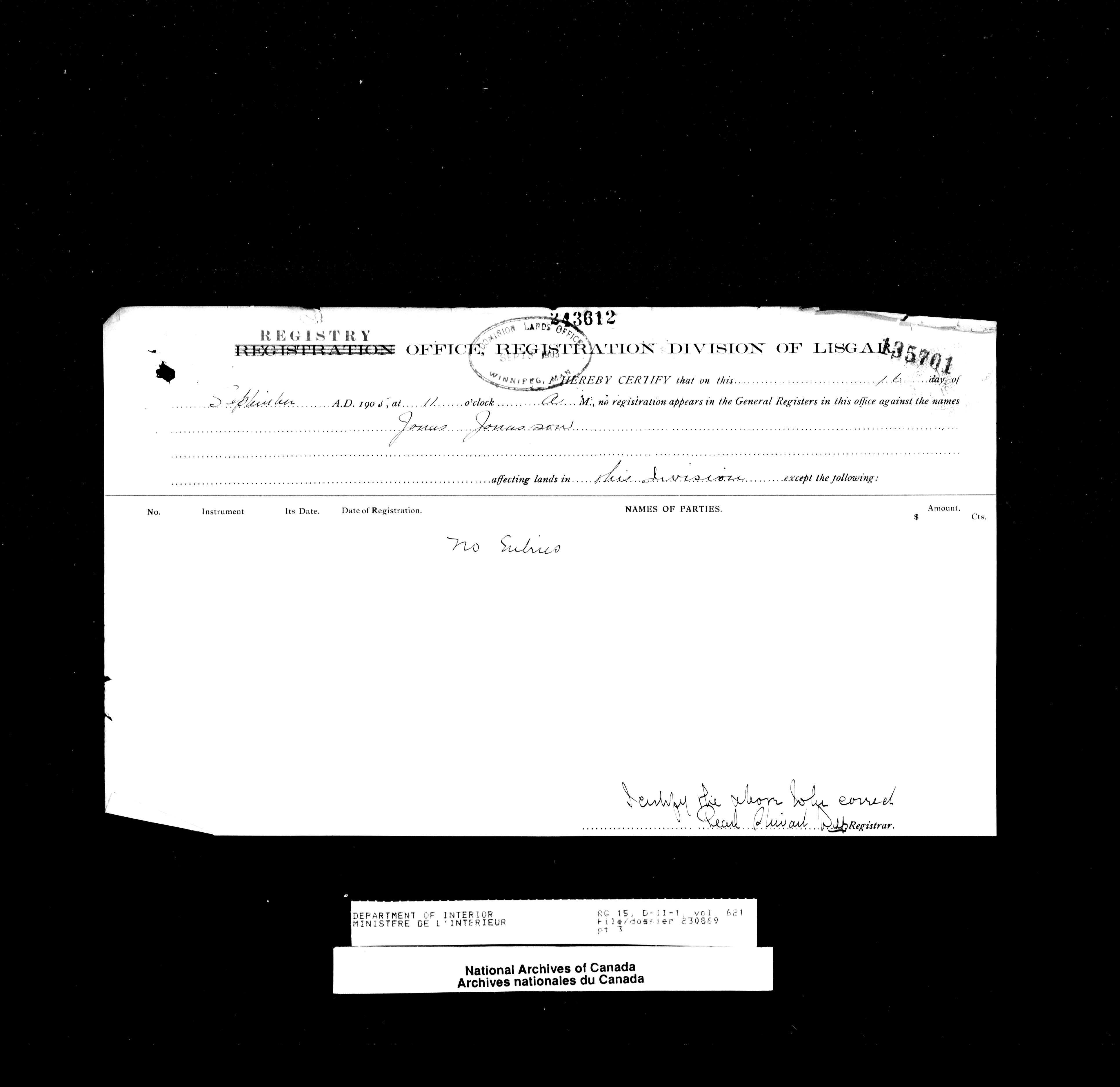 Central registry subject files created by the Dominion Lands Branch - 13869