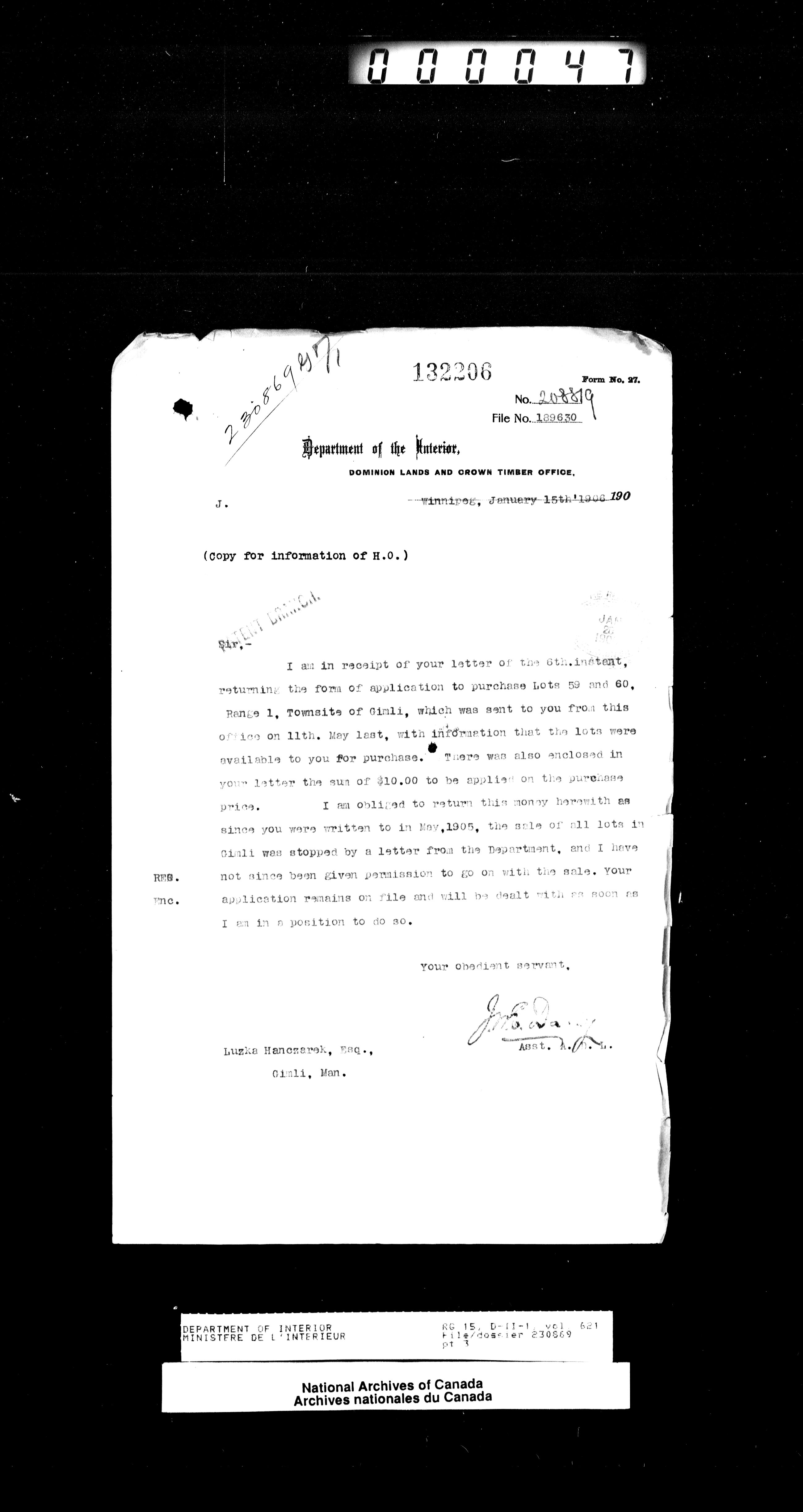 Central registry subject files created by the Dominion Lands Branch - 13869