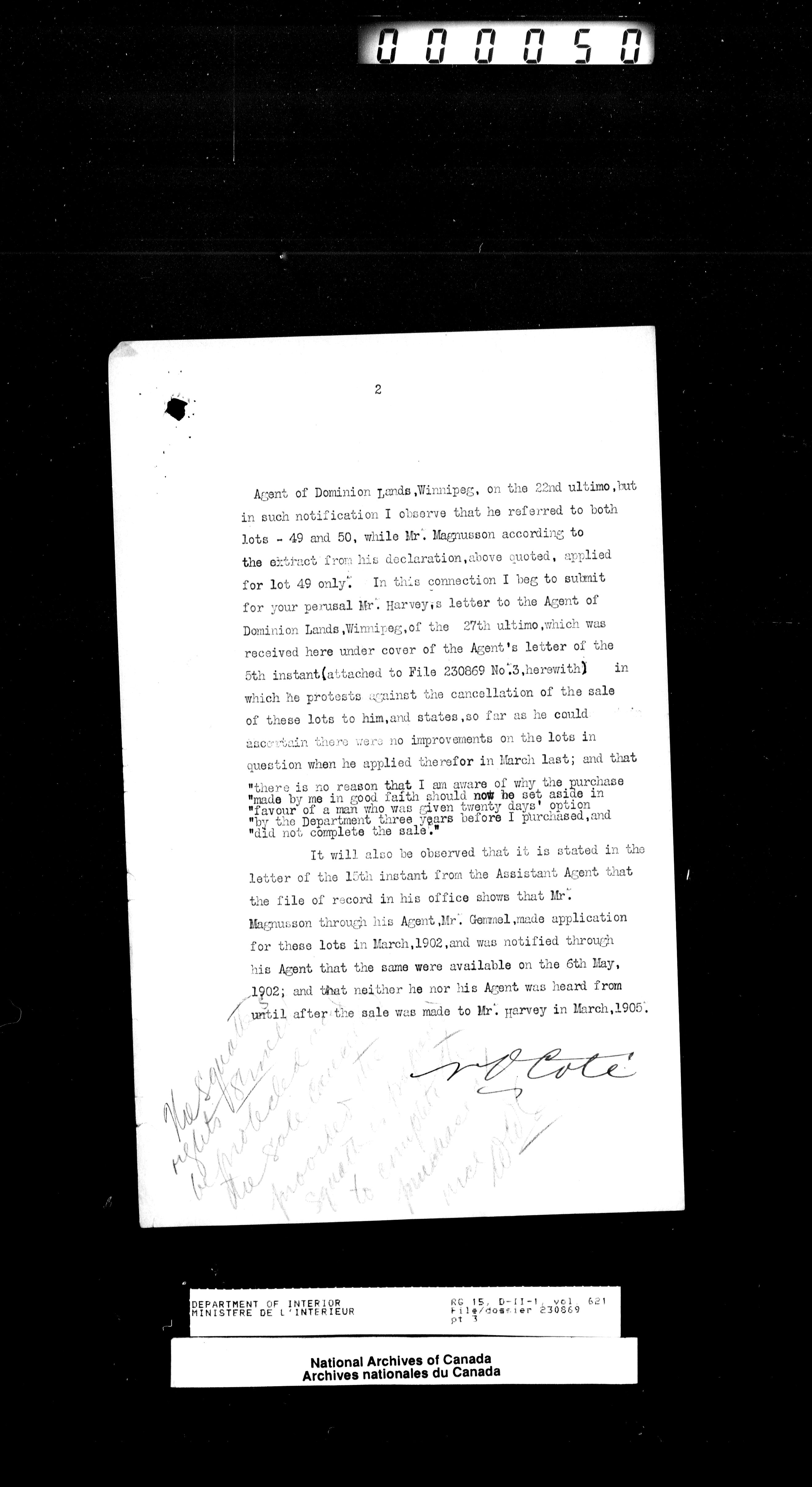 Central registry subject files created by the Dominion Lands Branch - 13869