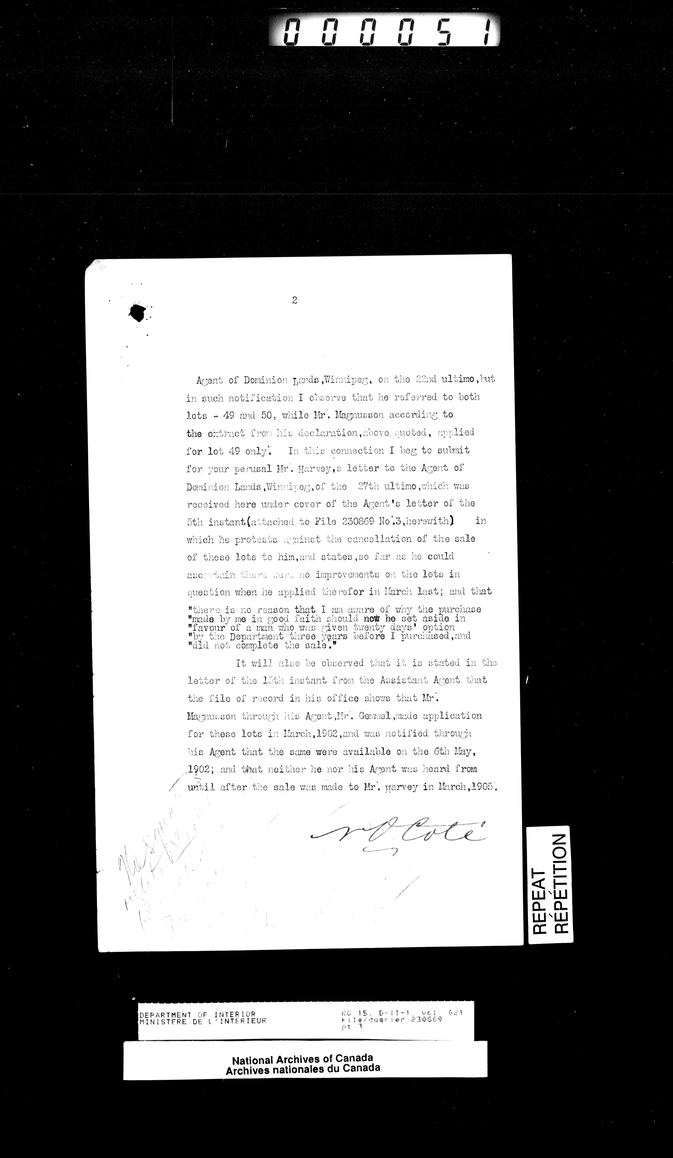 Central registry subject files created by the Dominion Lands Branch - 13869