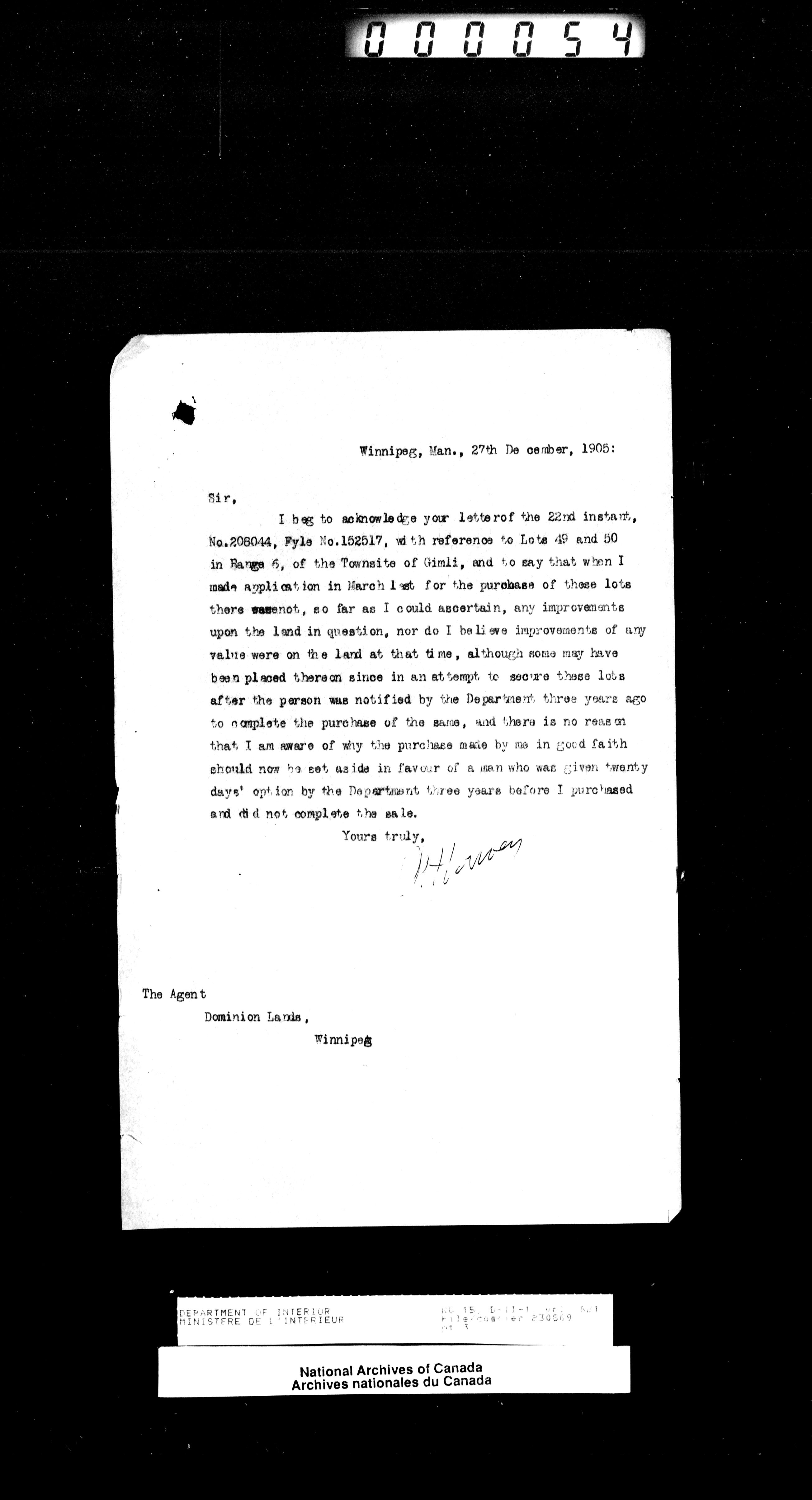 Central registry subject files created by the Dominion Lands Branch - 13869