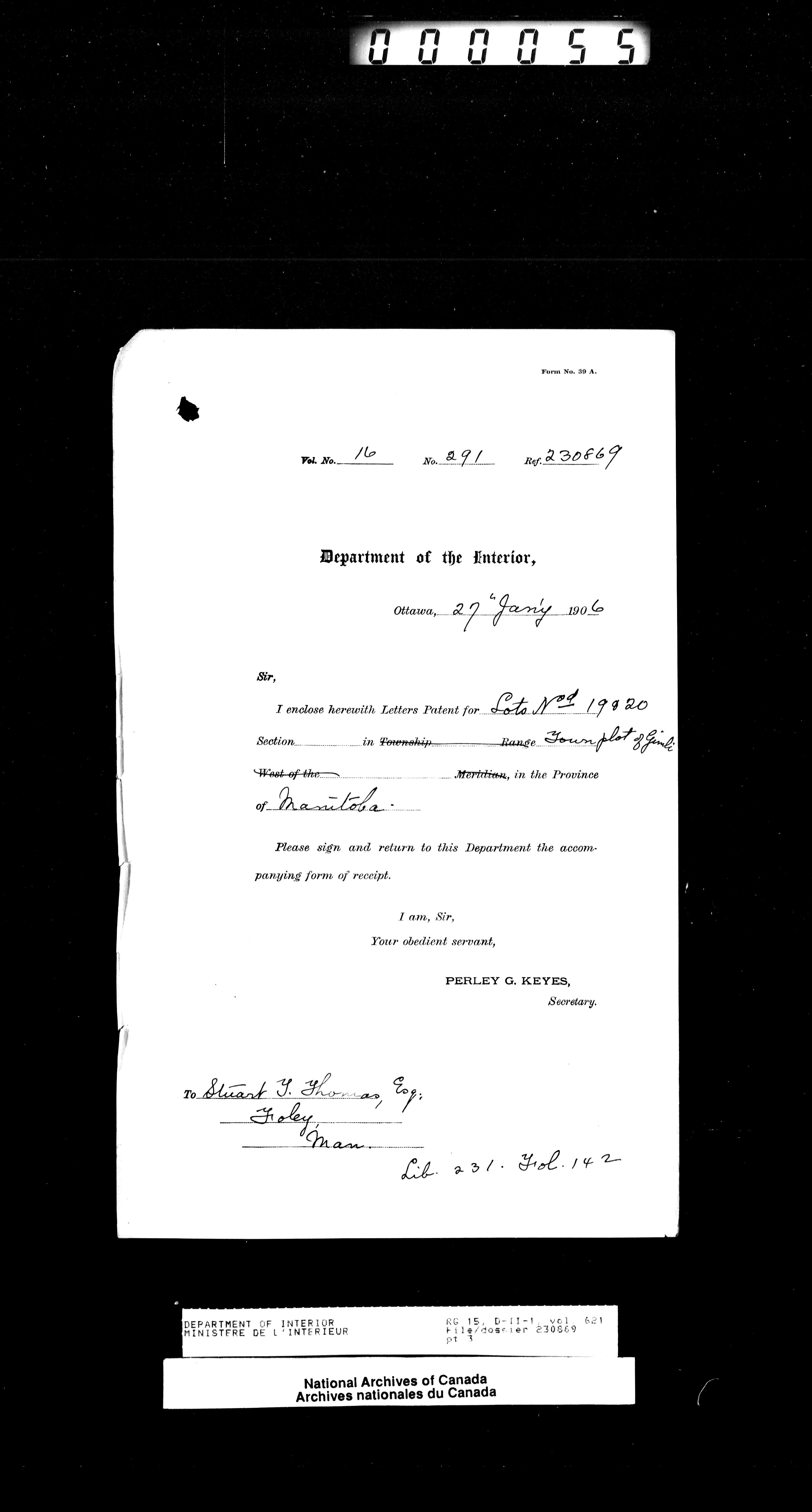 Central registry subject files created by the Dominion Lands Branch - 13869