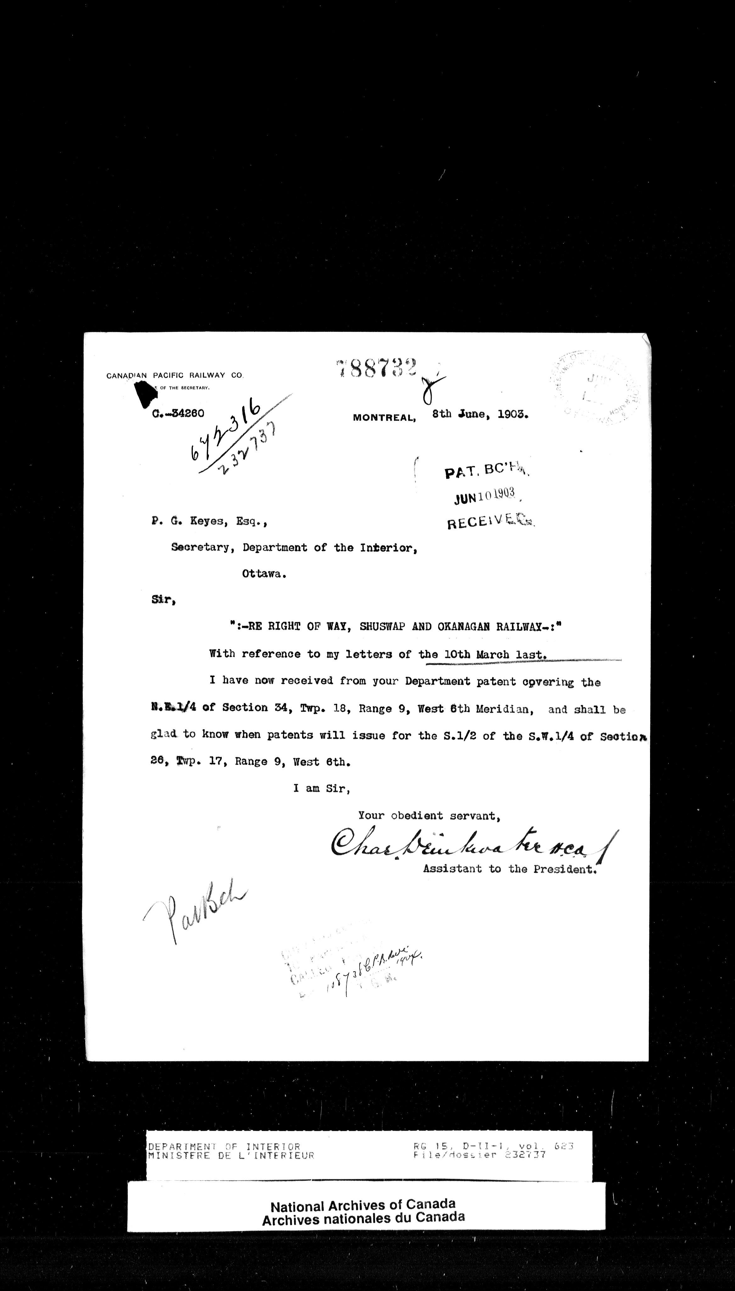 Central registry subject files created by the Dominion Lands Branch - 13871