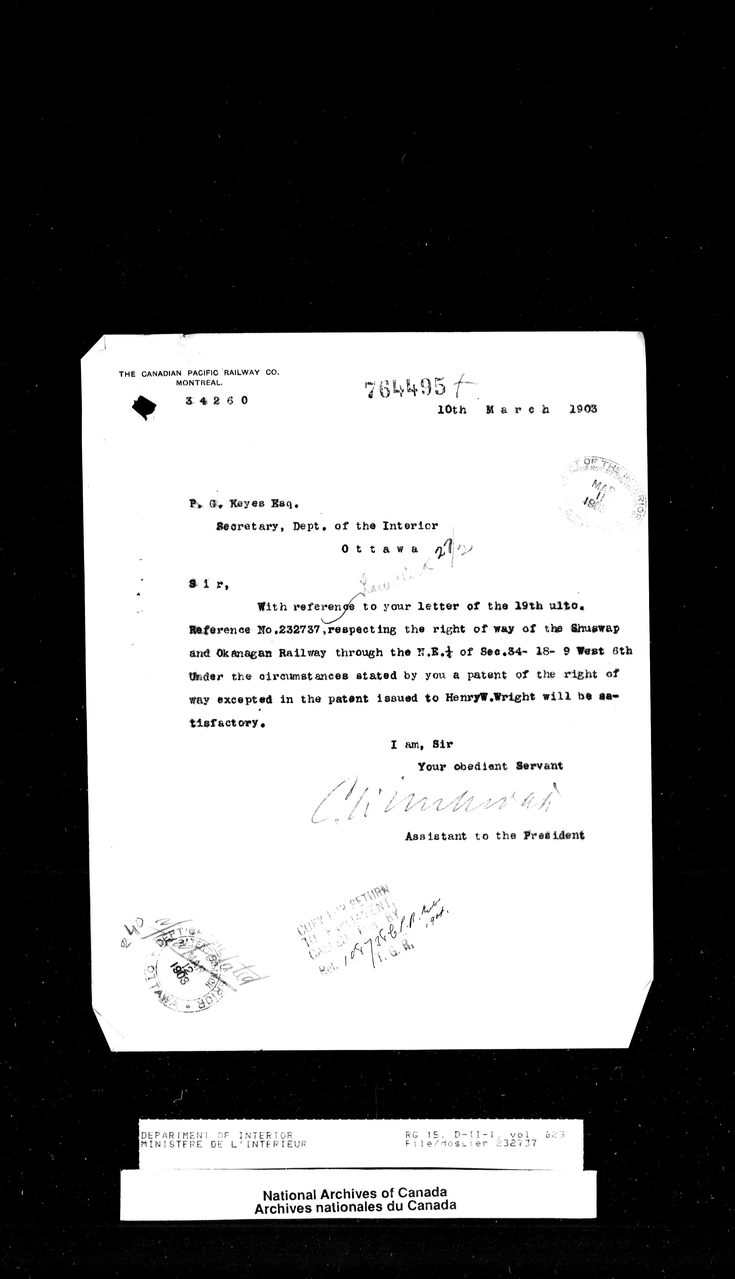 Central registry subject files created by the Dominion Lands Branch - 13871