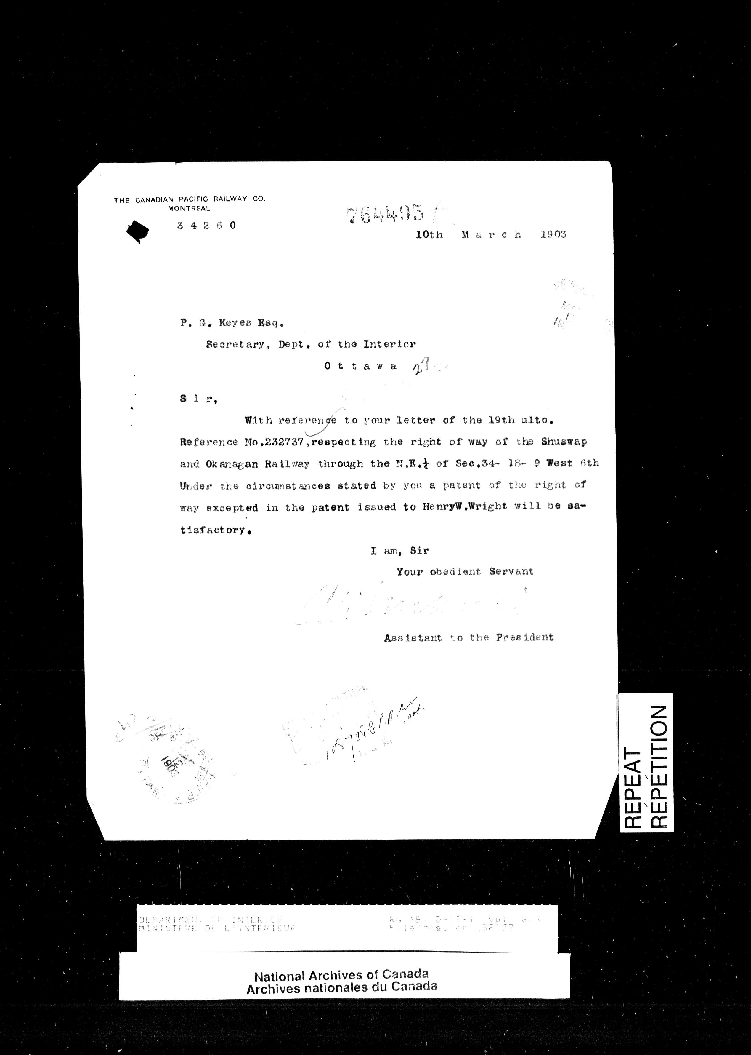 Central registry subject files created by the Dominion Lands Branch - 13871