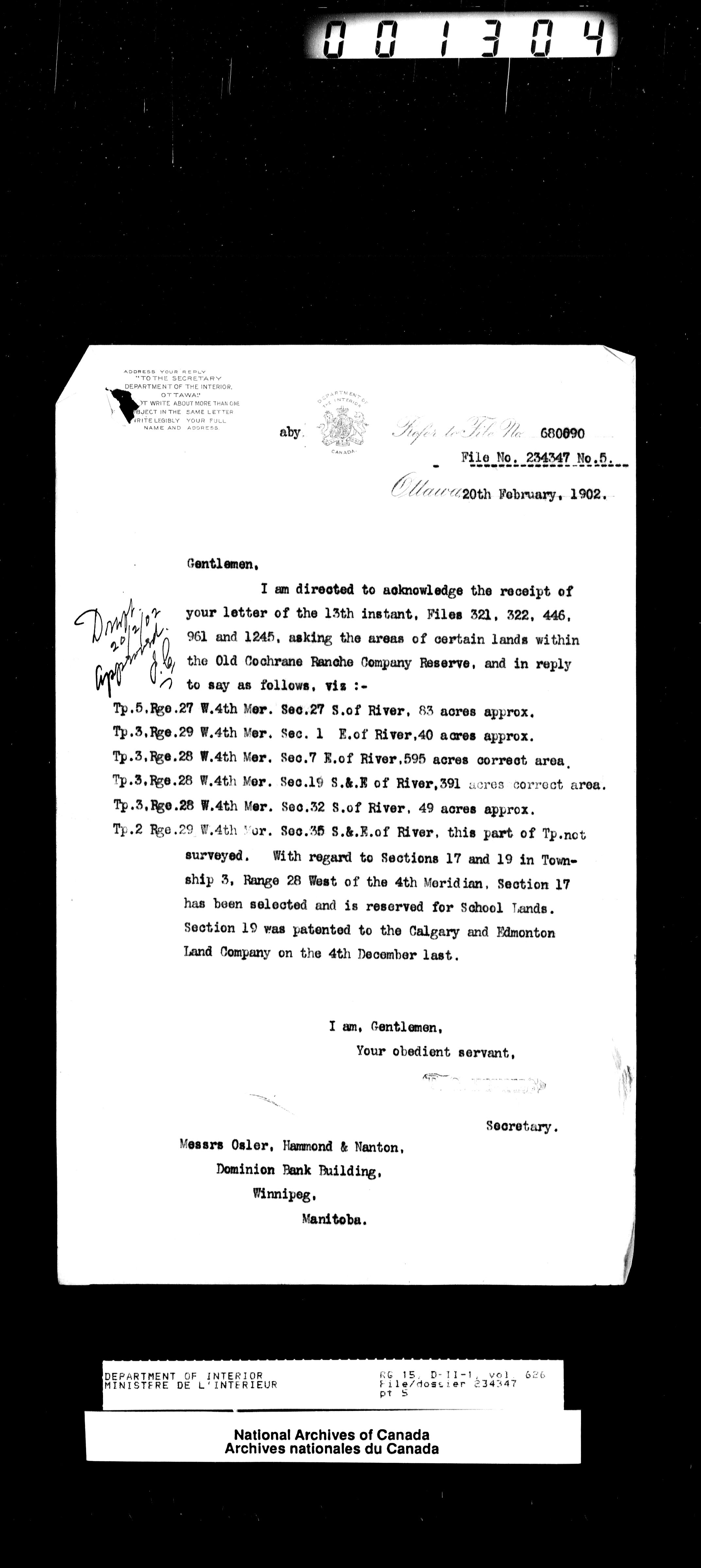 Central registry subject files created by the Dominion Lands Branch - 13873