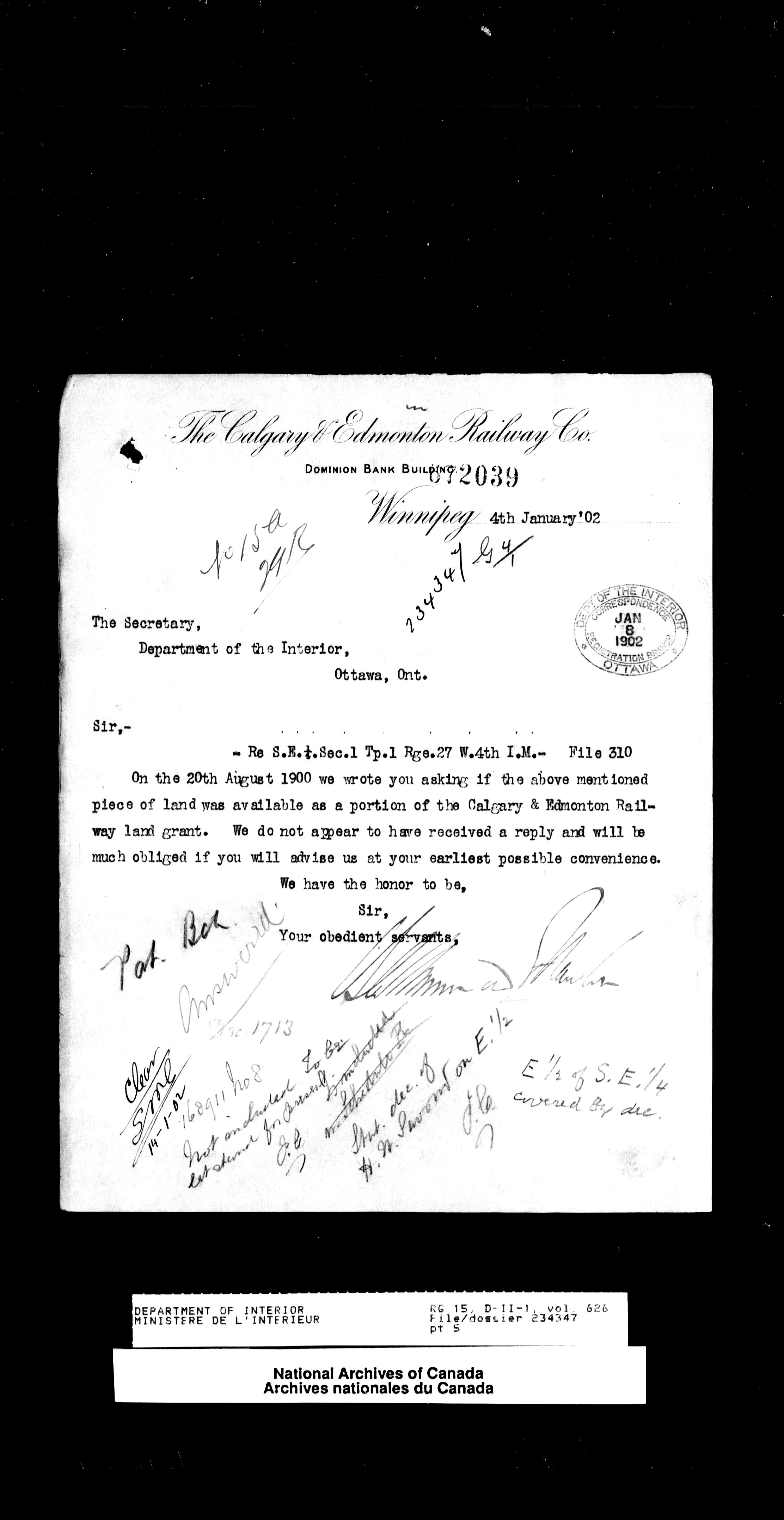 Central registry subject files created by the Dominion Lands Branch - 13873