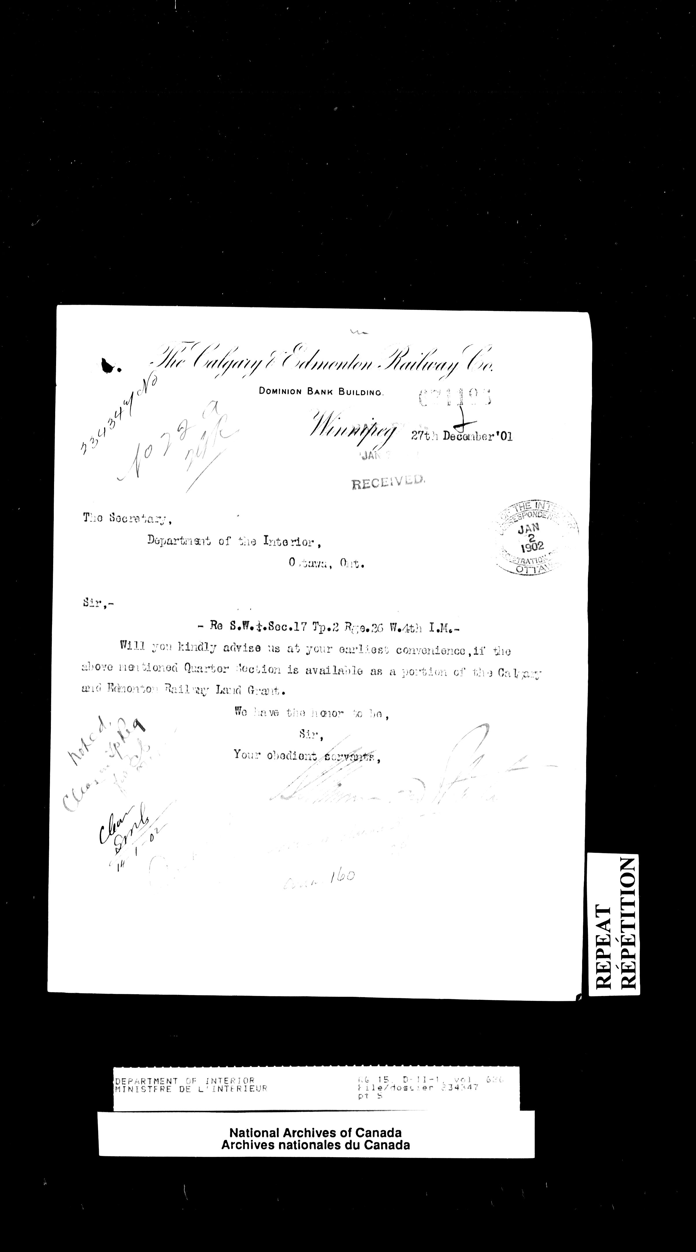 Central registry subject files created by the Dominion Lands Branch - 13873