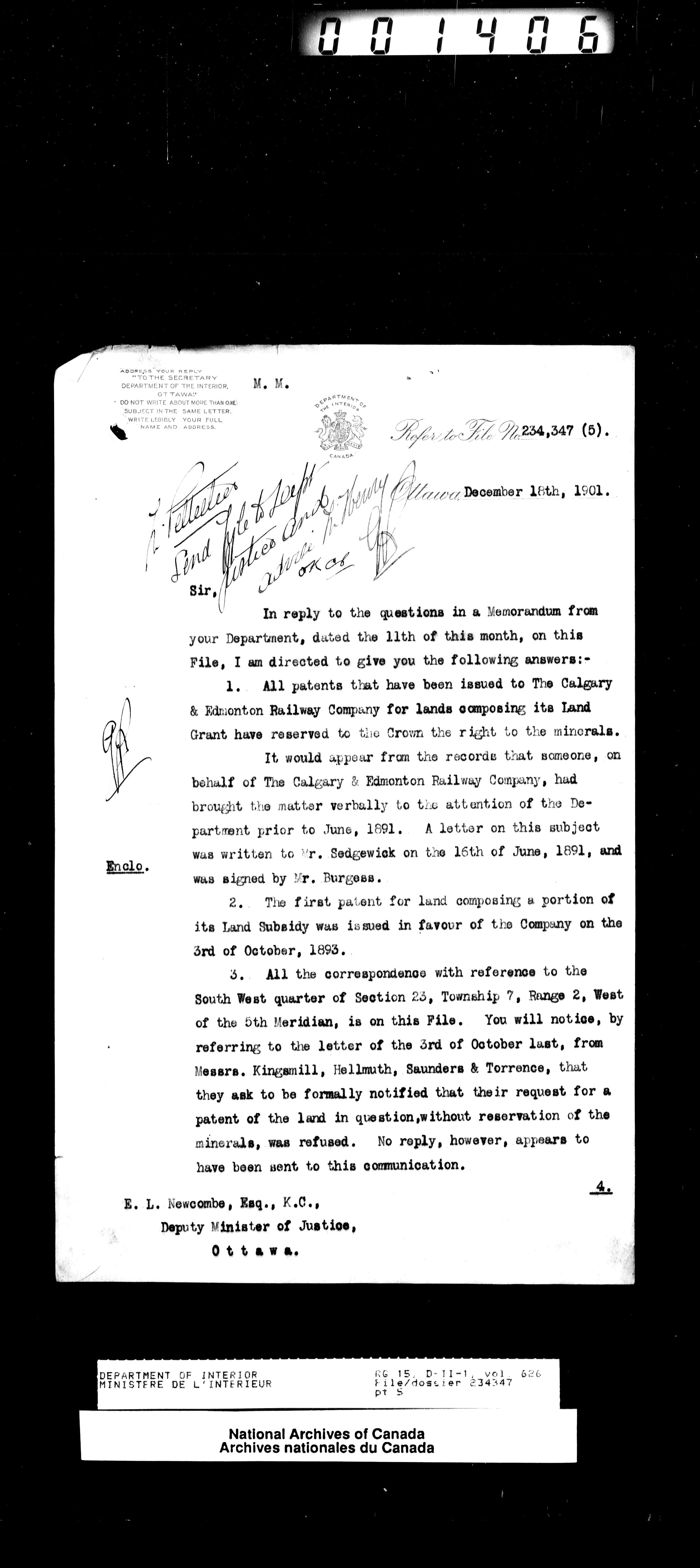 Central registry subject files created by the Dominion Lands Branch - 13873