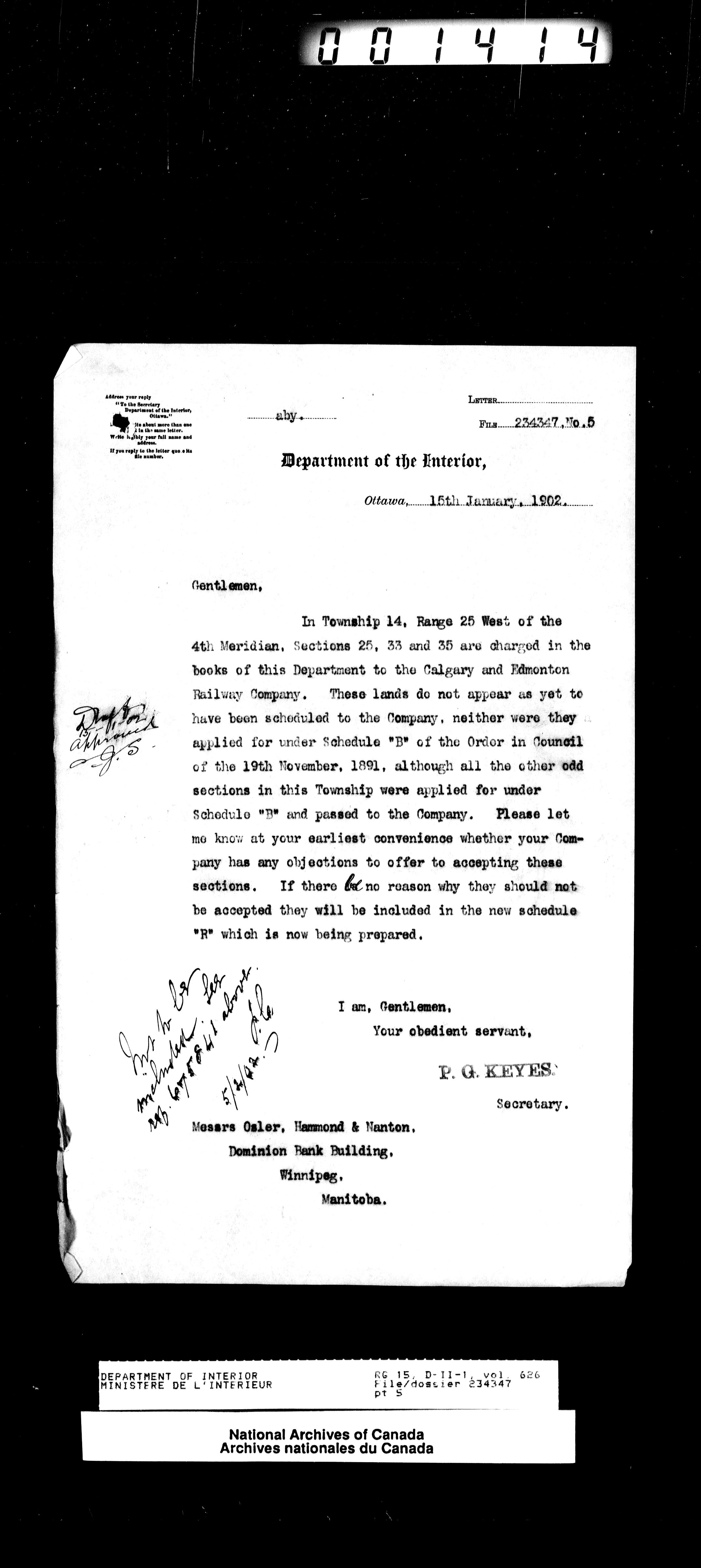 Central registry subject files created by the Dominion Lands Branch - 13873