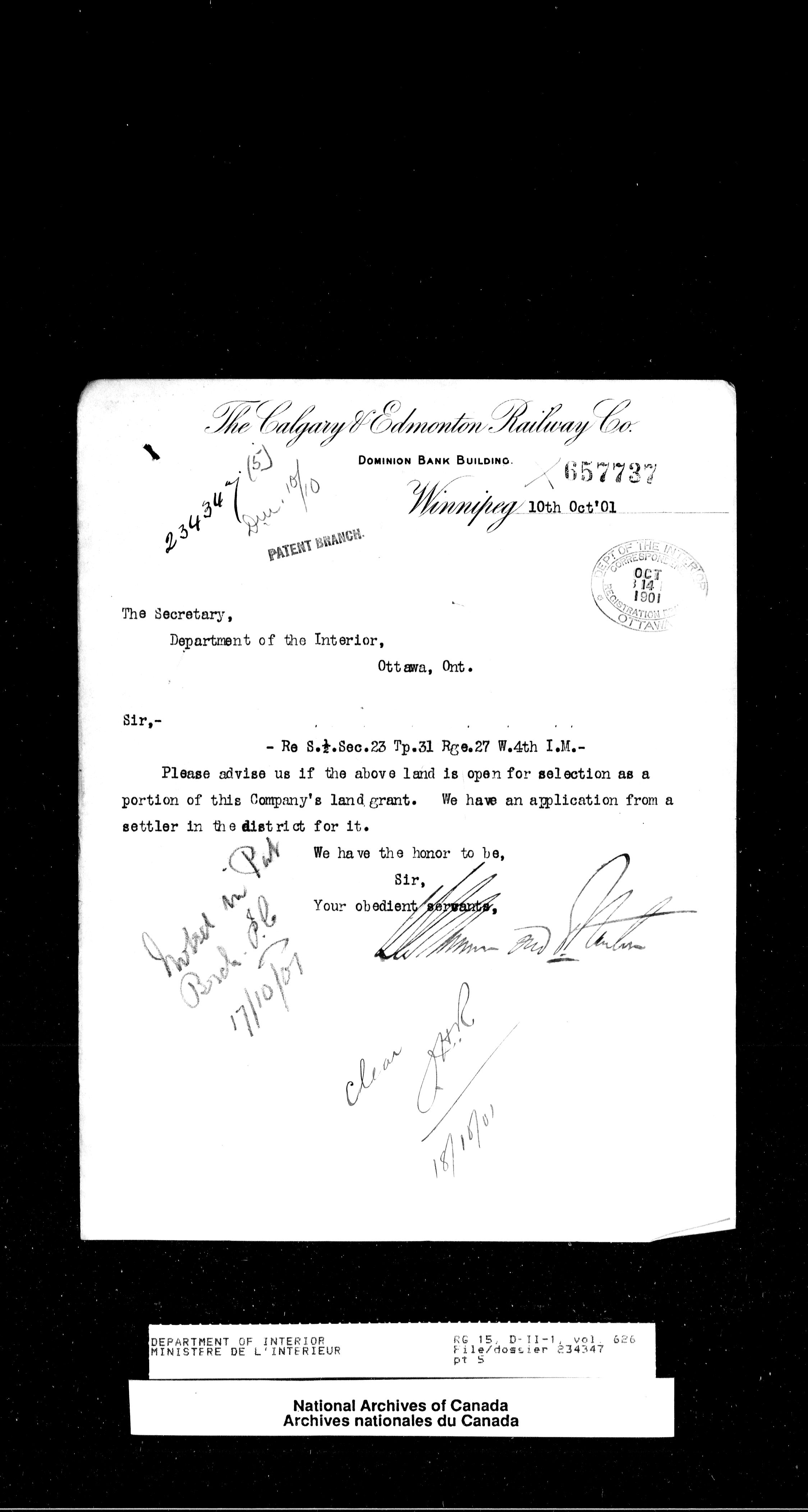 Central registry subject files created by the Dominion Lands Branch - 13874
