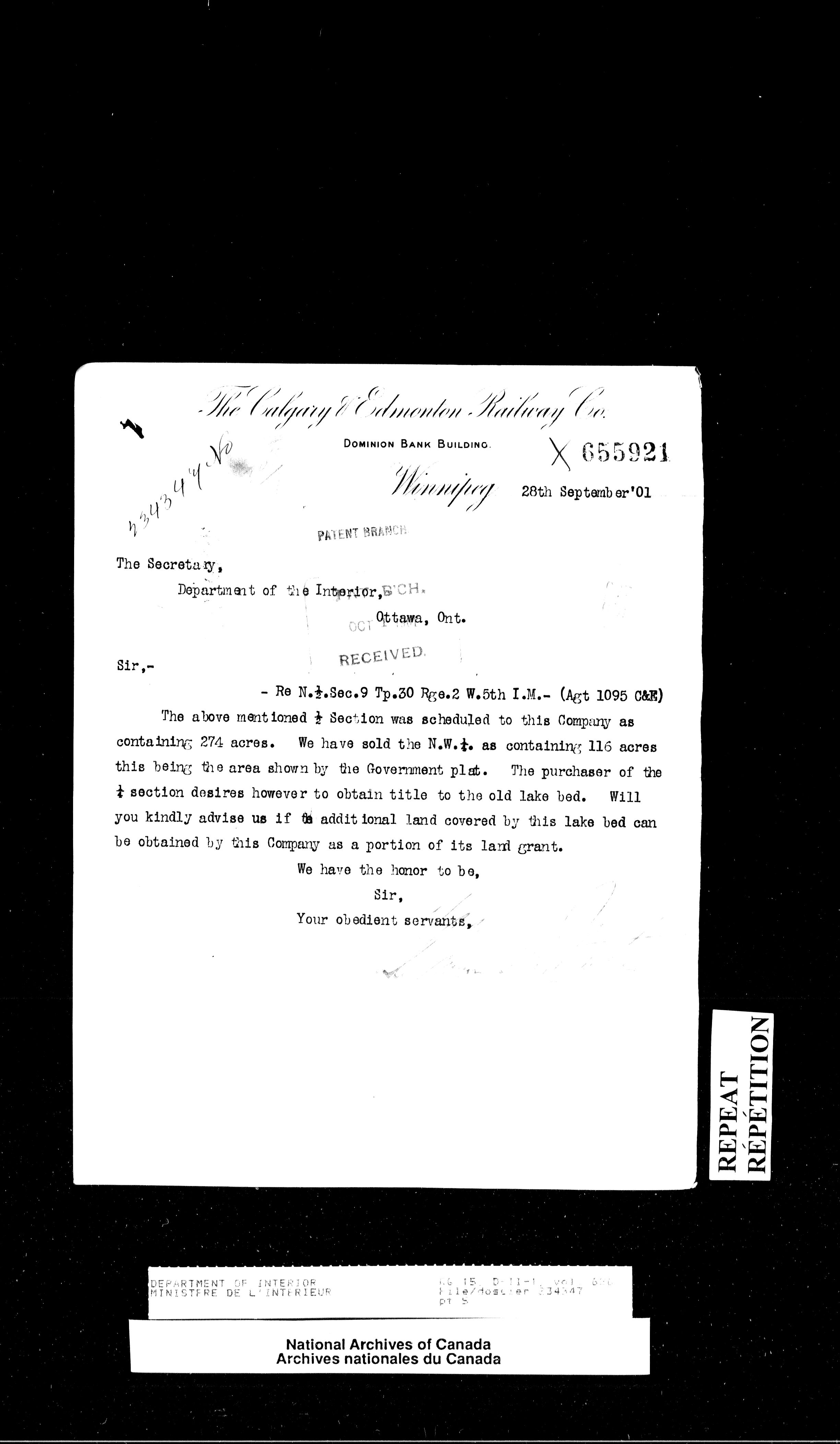 Central registry subject files created by the Dominion Lands Branch - 13874
