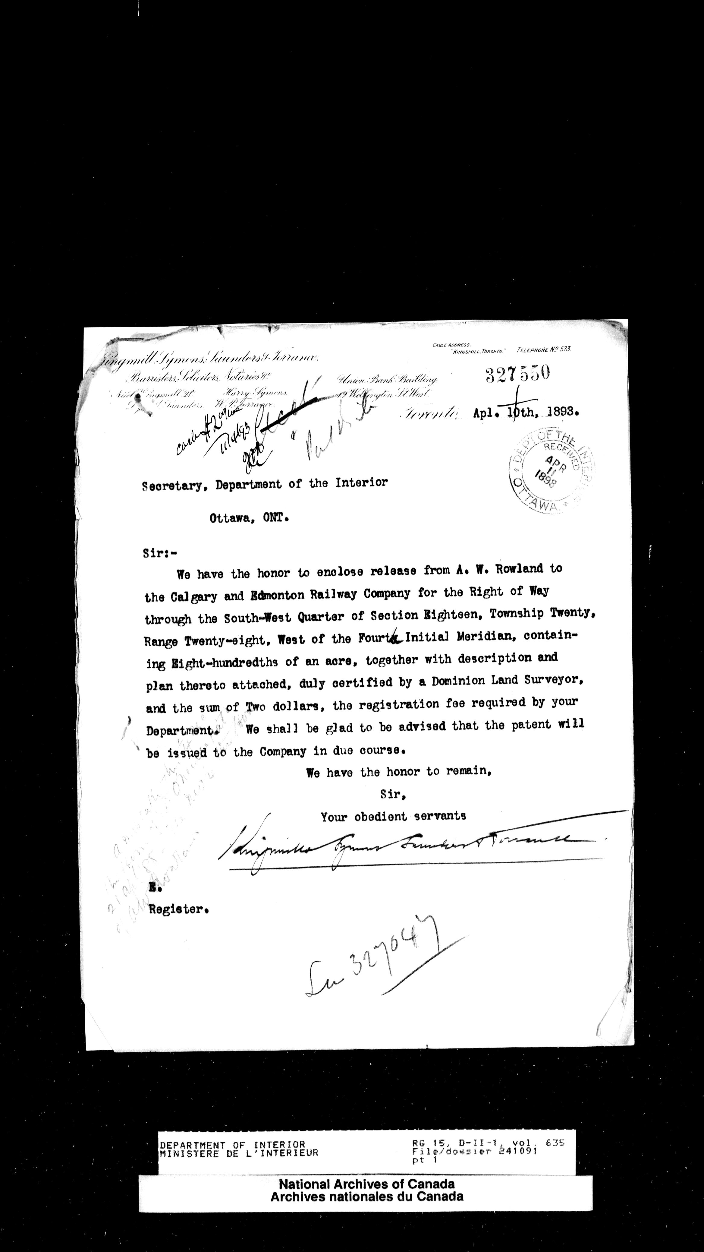 Central registry subject files created by the Dominion Lands Branch - 13883