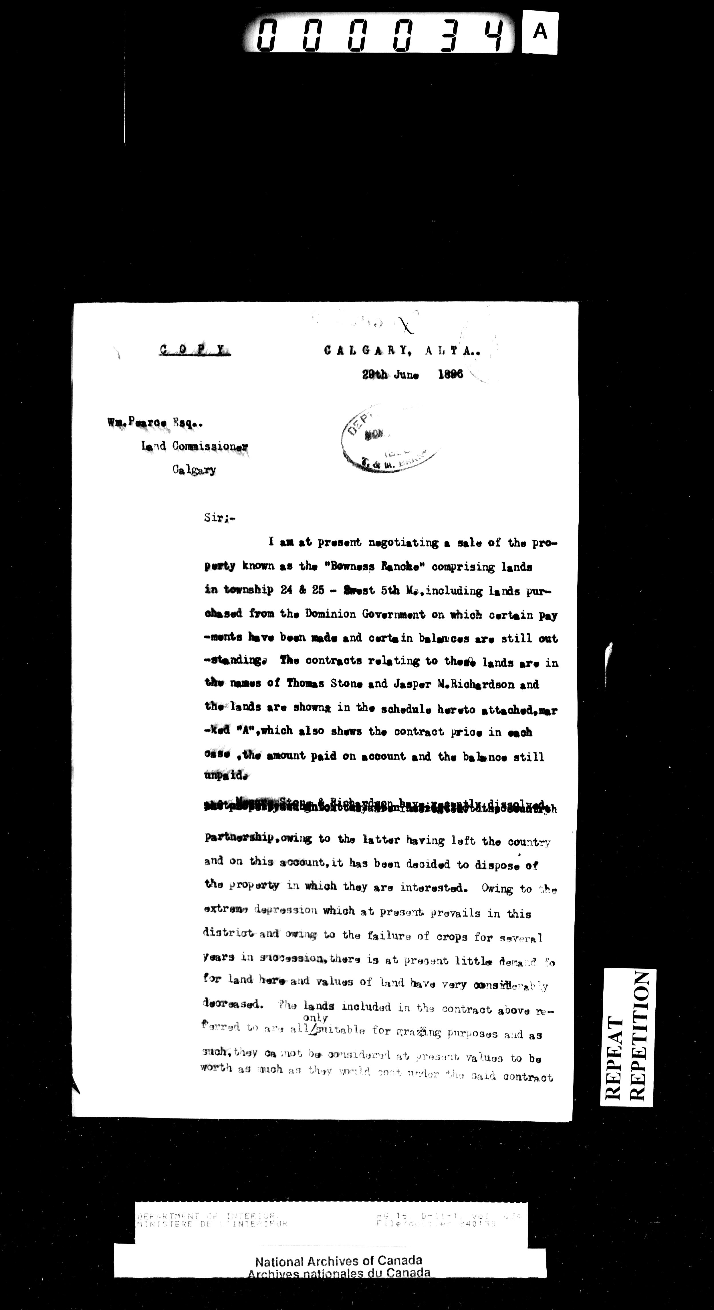 Central registry subject files created by the Dominion Lands Branch - 13883